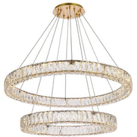Elegant Lighting 36" Led Double Ring Chandelier - Modern Gold Ceiling Light For Home Decor