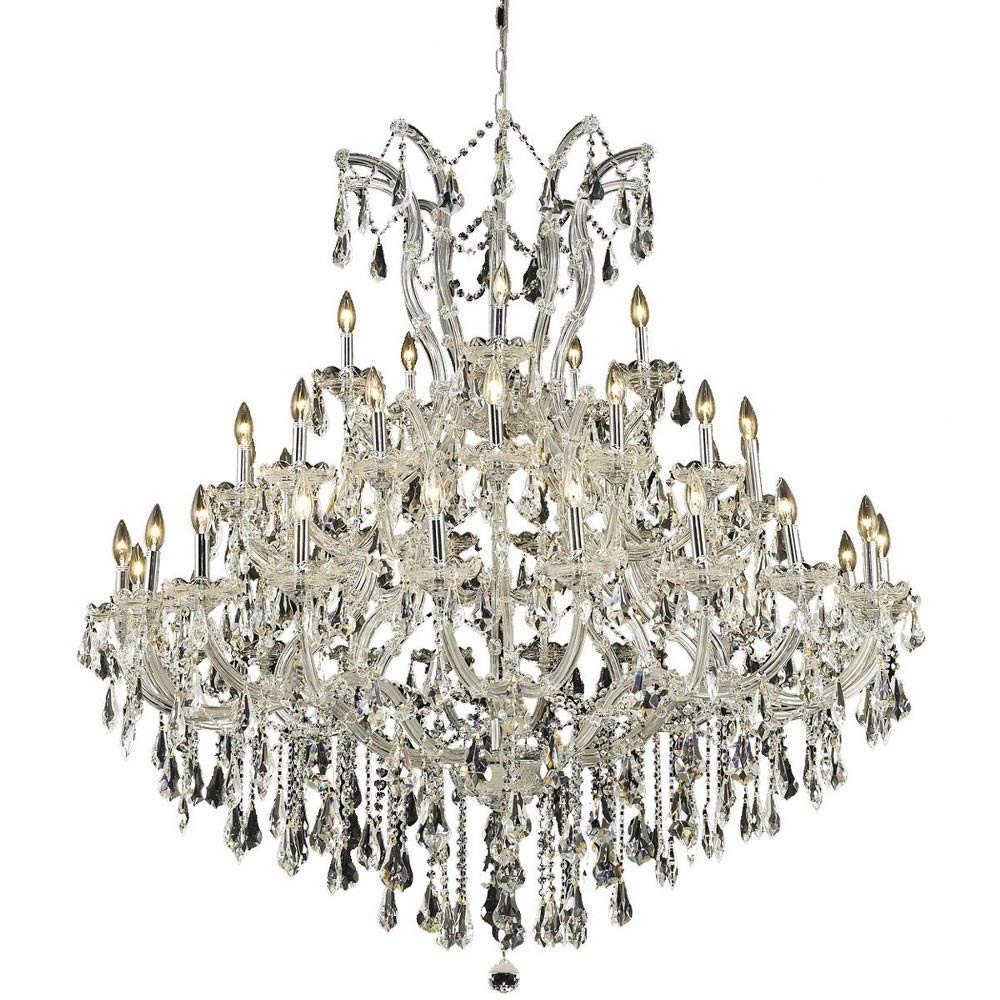 Q: What is the size of the Elegant Lighting Maria Theresa chandelier?A: This chandelier has a width of 52.00 inches and a height of 54.00 inches, making it a large fixture suitable for spacious areas.
