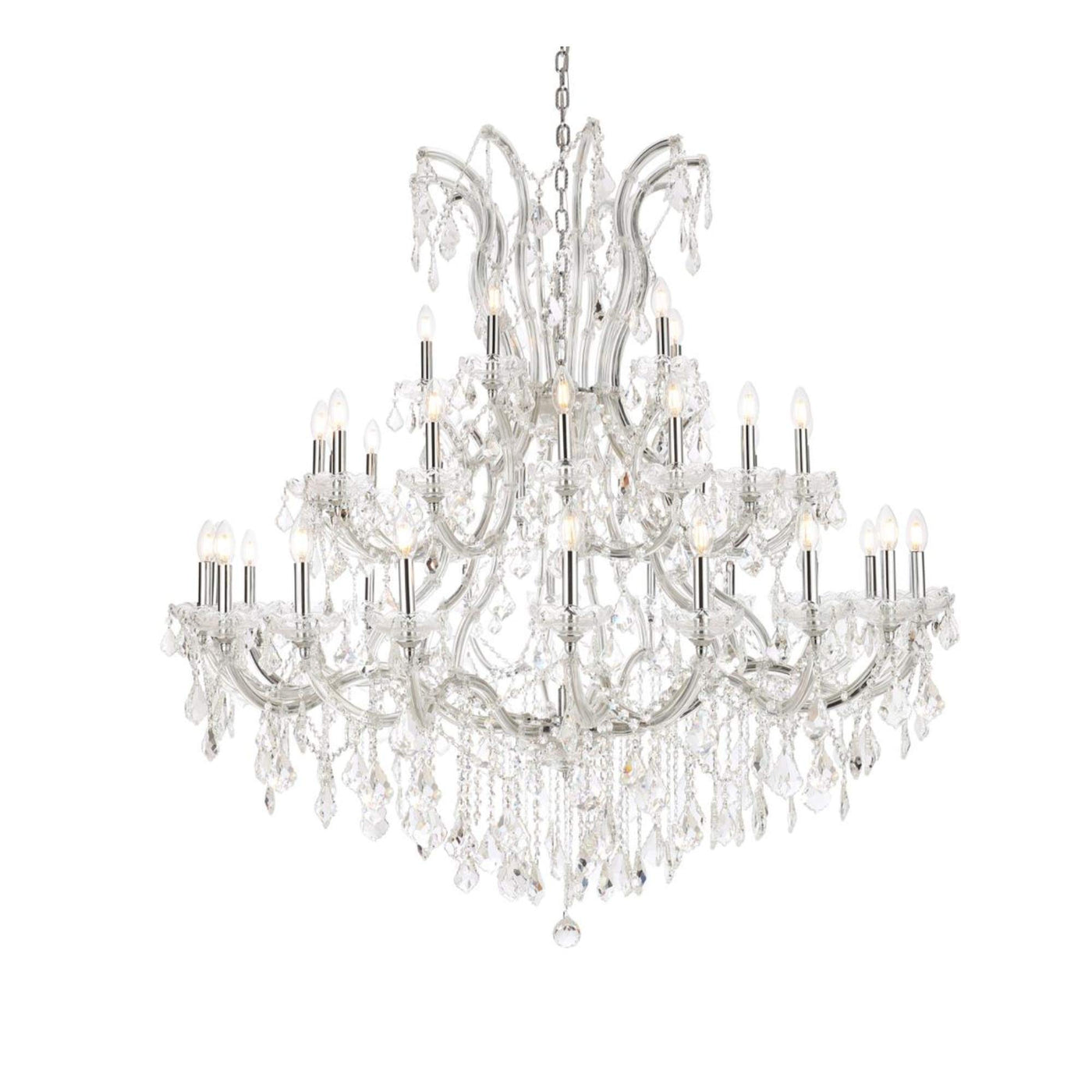 Elevate your space with the Elegant Lighting Maria Theresa 41-light Crystal Chandelier, a breathtaking centerpiece that combines exquisite design and luxurious materials. This three-tier chandelier is crafted to perfection, making it the ideal choice for those who appreciate the finer things in life.