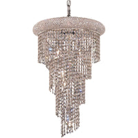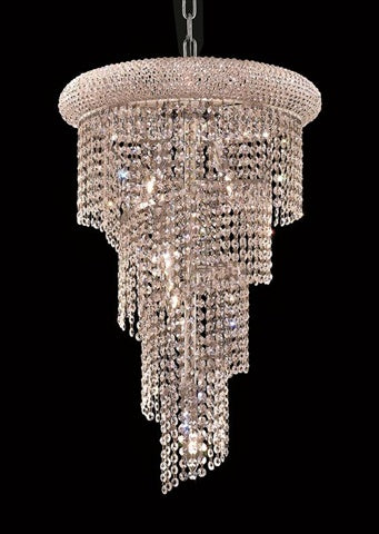 Transform your space with the Elegant Lighting 1801SR16C Spiral 8-Light Crystal Chandelier, a stunning centerpiece that combines luxury and sophistication. This exquisite four-tier chandelier features a chrome finish adorned with clear crystals, ensuring a radiant ambiance in any room.