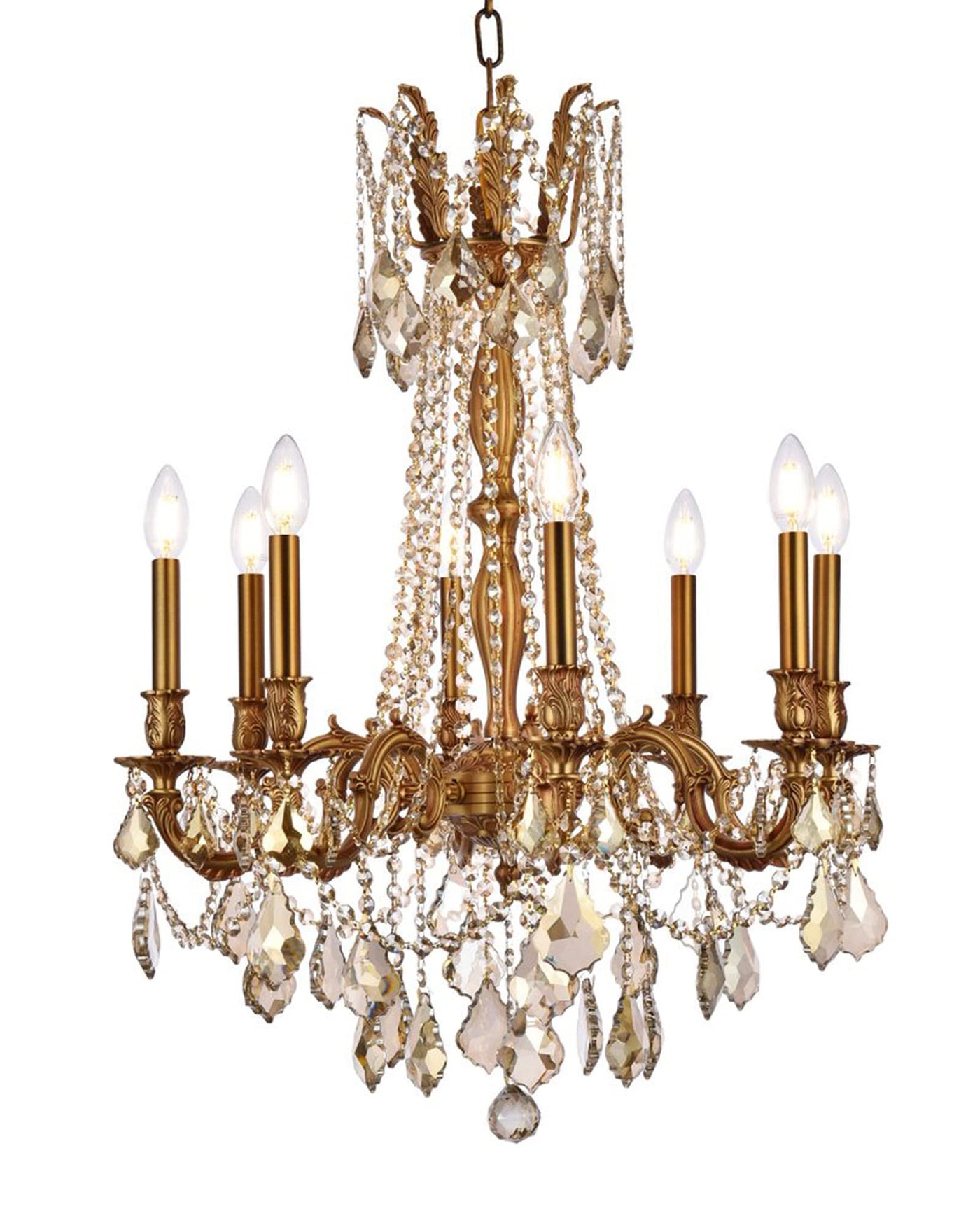 Elegant Lighting 8-Light Crystal Chandelier, French Gold Finish, Smoky Golden Teak Crystals