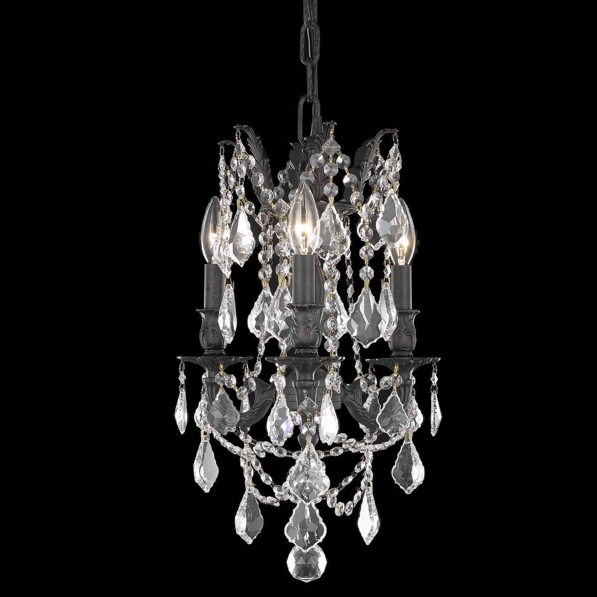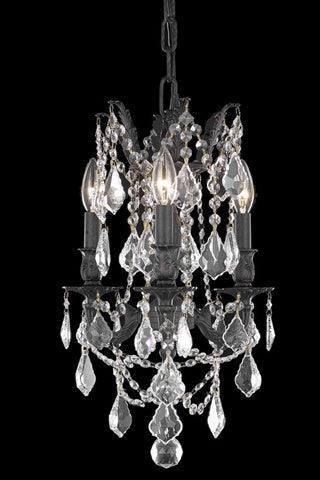 The Rosalia collection is a stunning and decadent example of the design period of the Austro-Hungarian empire The bold strength of the four brass casting finishes to choose from is a perfect contrast to the luxuriously draped glistening crystal strands surrounded by candelabra lightingFeaturesStyle - TransitionalType - Pendant Lampcollection - Rosaliachain Wire Included - 3 ftLight Blubs - 3Bulb Type - E12Bulb Wattage - 60Max Wattage - 180Voltage - 110V-125VFinish - Dark Bronzecrystal Trim - Royal cutcrystal color - crystal (clear)UL & Ulc StandardHanging Weight - 18Dimension - 13 Dia x 18 H in