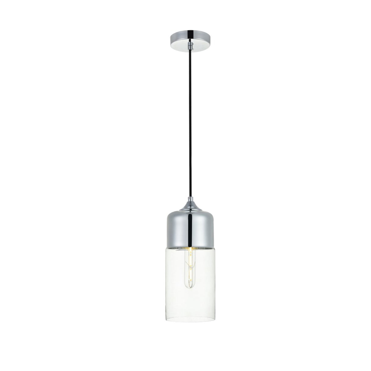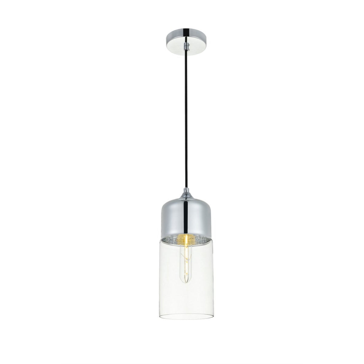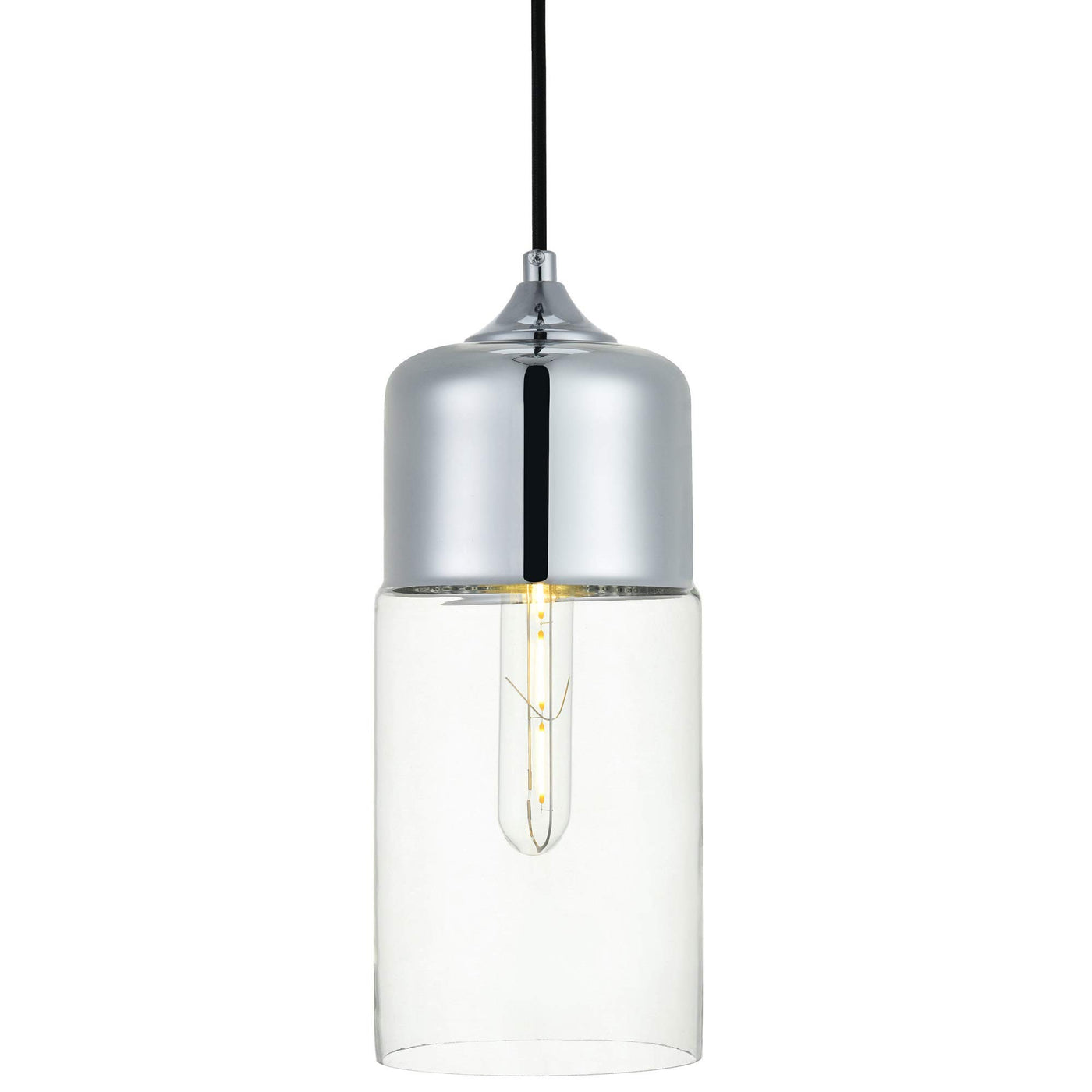Elegant Lighting Ashwell Chrome Pendant Light With Clear Glass, 1 Light Fixture