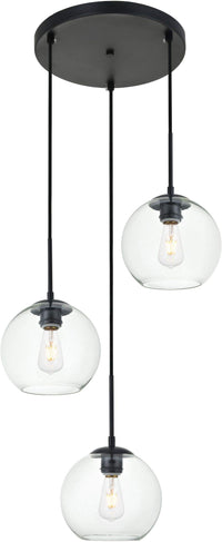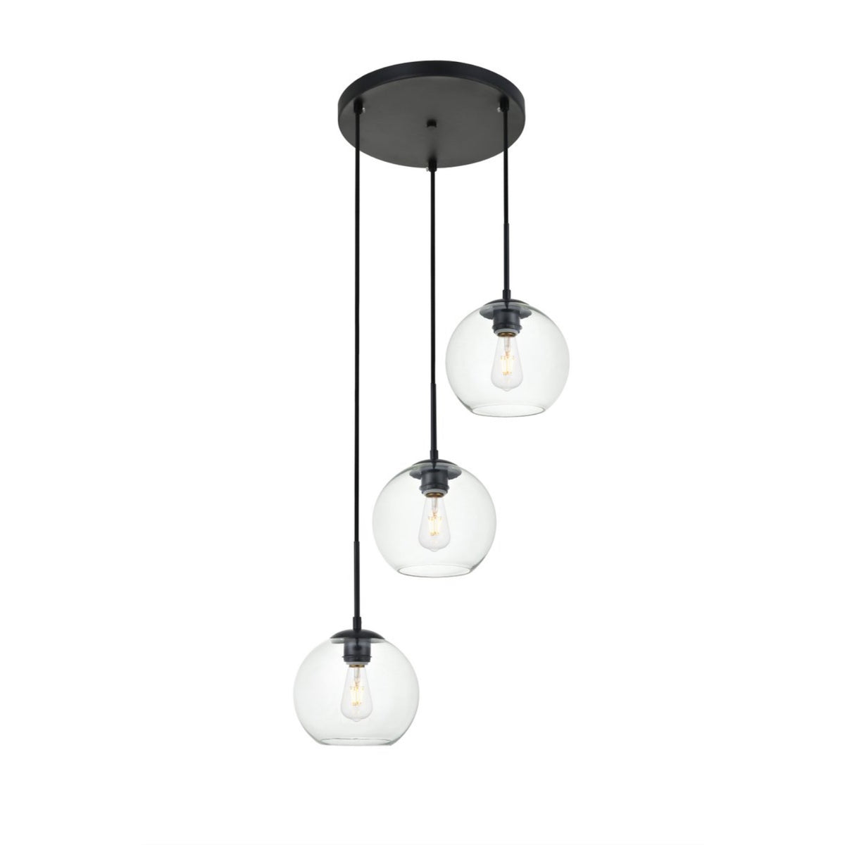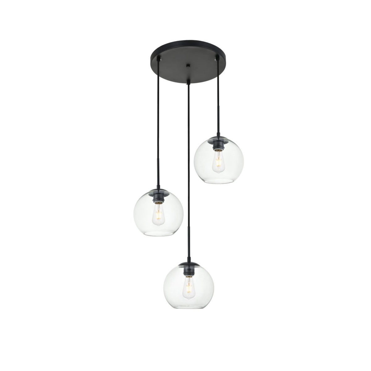 Elegant Lighting Baxter 3-Light Black Metal Pendant With Clear Finish