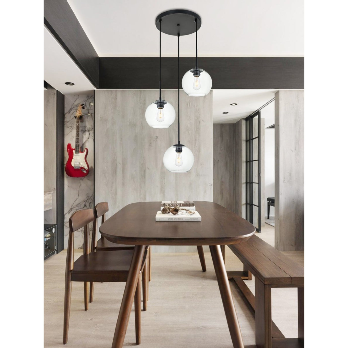 Transform your space with the Elegant Lighting LD2208BK Baxter Three Light Pendant Light. This stunning pendant light combines modern elegance with functional design, making it a perfect addition to any transitional decor. Crafted with a sleek black iron frame and complemented by a spherical clear glass shade, this fixture not only illuminates your room but also enhances its aesthetic appeal.