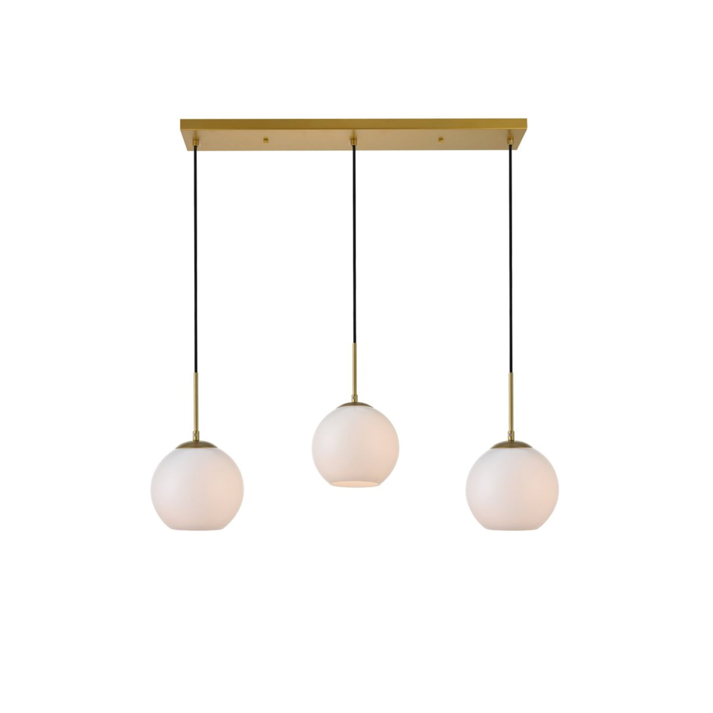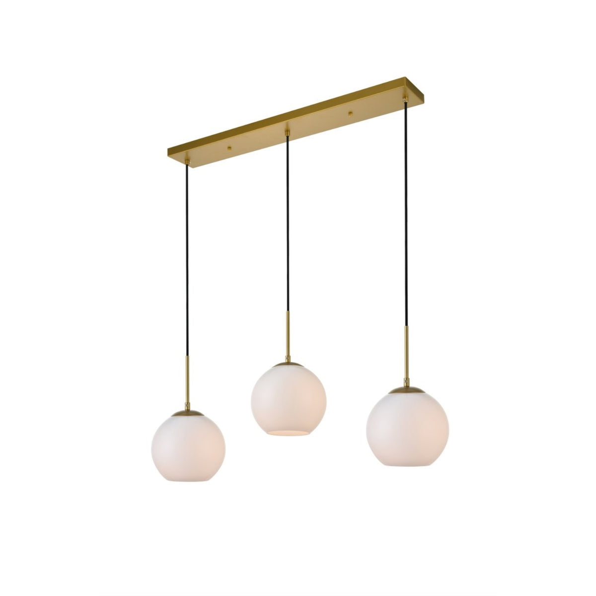Elegant Lighting Baxter 3-Light Brass & Frosted White Pendant - Metal & Glass Fixture