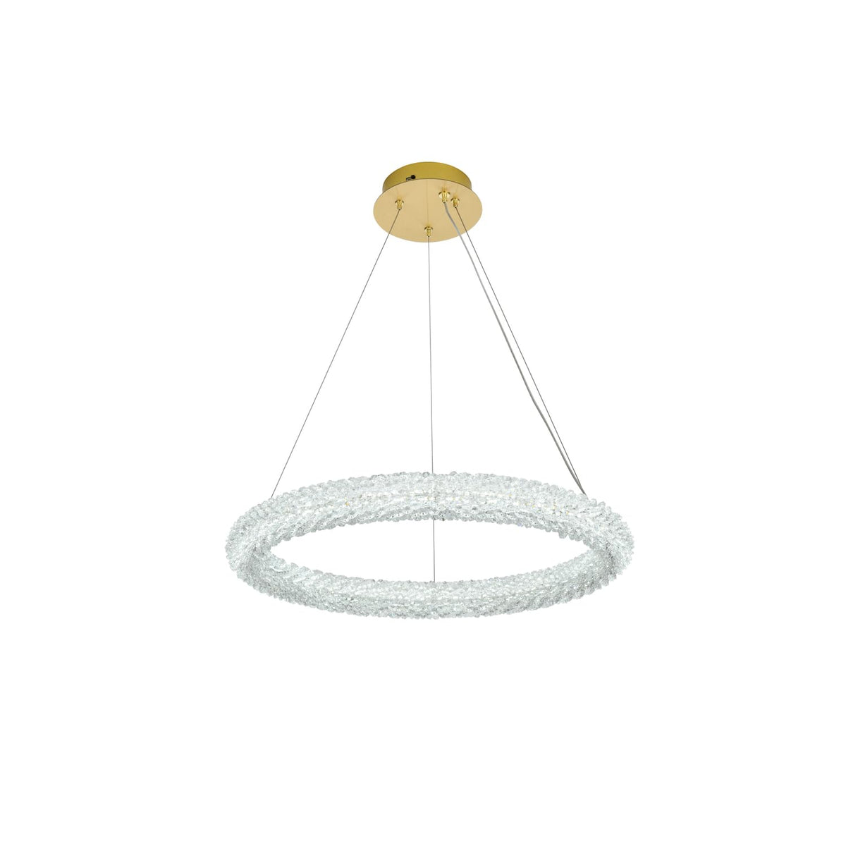 Crafted from durable Iron and Crystal materials, this chandelier promises exceptional reliability and style. With no assembly required, installation is swift and user-friendly, allowing you to enjoy your new lighting fixture in no time. Transform your living space with this exquisite 24-inch LED Chandelier from Elegant Lighting, where brilliance meets elegance.