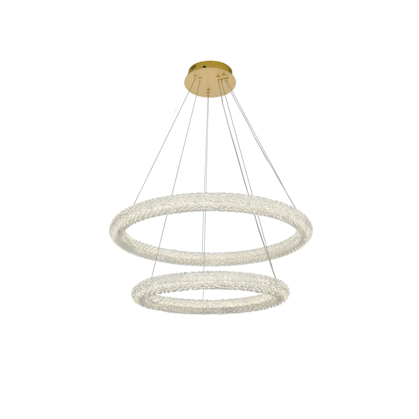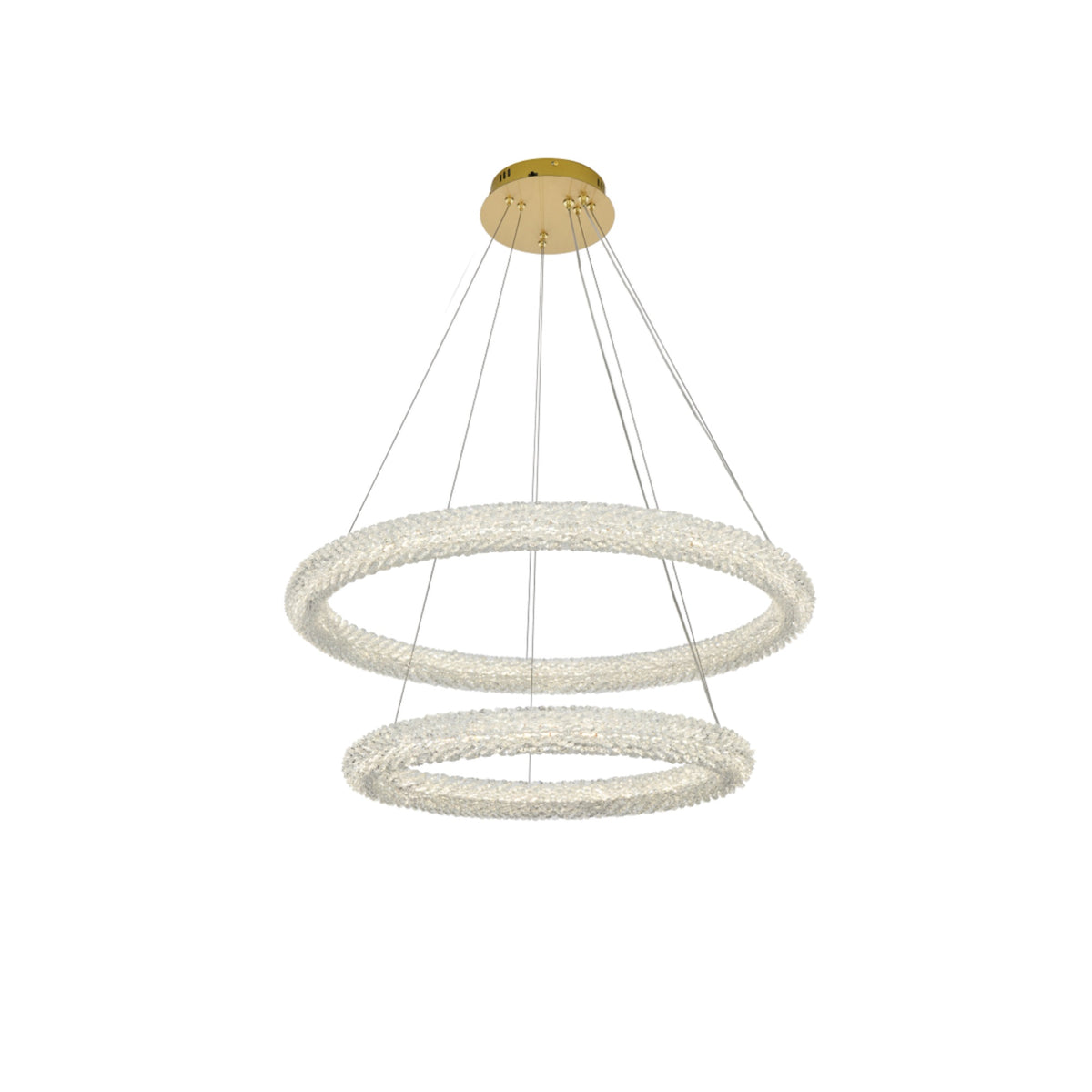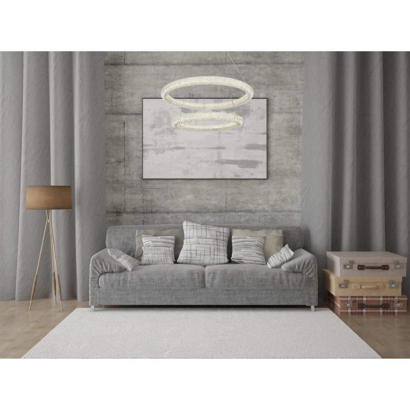 - **Elegant Design**: This chandelier features two captivating rings adorned with crystals, adding a touch of sophistication to any room.