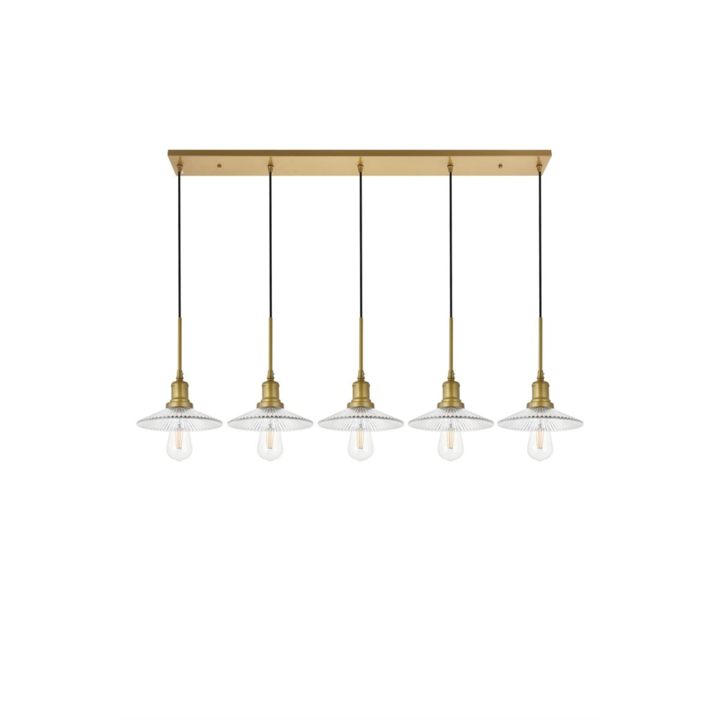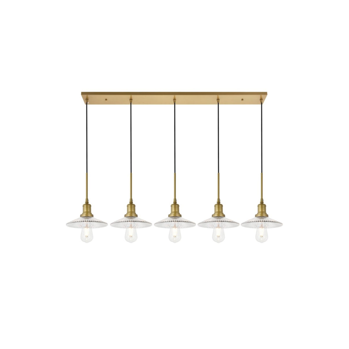 Elegant Lighting Brass 5-Light Pendant - Modern Indoor Ceiling Fixture, Clear Glass Accents