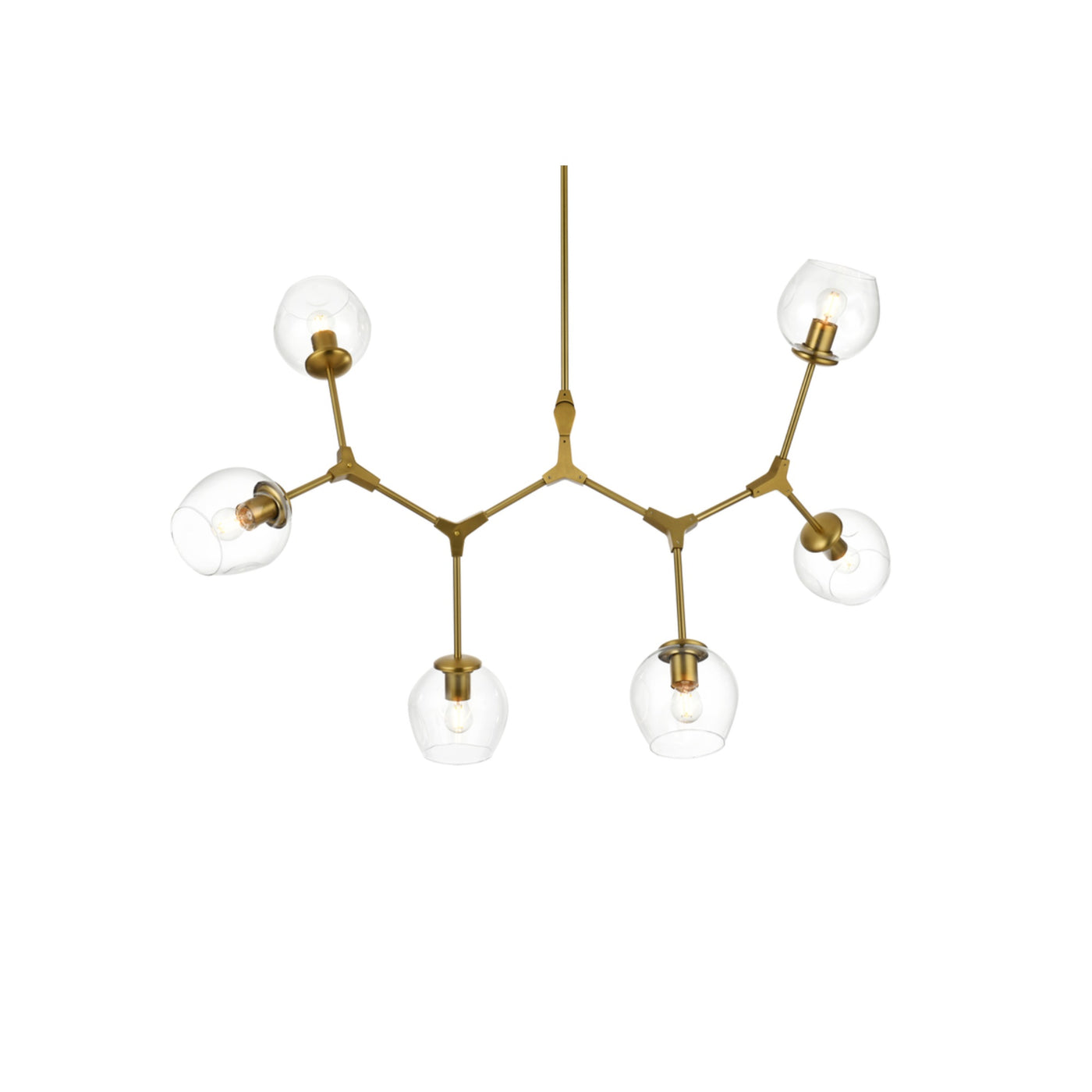 - **Versatile Style**: With its brass finish and clear glass, the Cavoli Chandelier blends seamlessly with both contemporary and traditional decor, making it a versatile addition to dining rooms, living areas, or entryways.