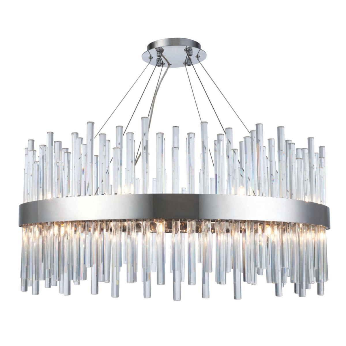 This Stately Fixture Combines Timeless Elegance With Modern And Attractive Sophistication. The Delicate Juxtaposition Of Upright And Hanging Clear Glass Rods Creates A Truly Stunning Visual Statement, Seamlessly Woven Together Within A Sleek Chrome Frame. This Expressive Piece Would Be A Welcomed And Treasured Addition To A Wide Range Of Contemporary Residential Styles.