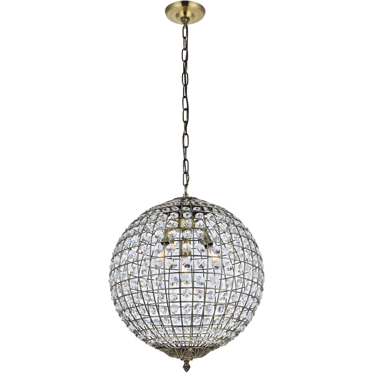 Elegant Lighting Earlene 3-Light Bronze Pendant Lamp - Iron & Crystal, Transitional Design