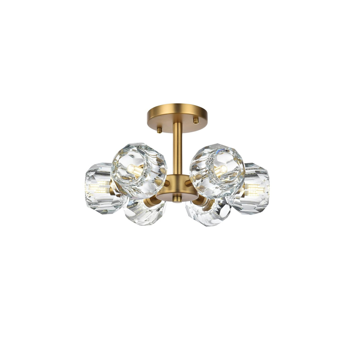 Introducing the Eren 14-inch Flush Mount—a perfect synthesis of elegance and practicality that effortlessly complements any space. With its compact size and stylish presence, this flush mount is an ideal addition to your decor. The Eren features six lights adorned with faceted crystal glass shades, casting a luxurious and timeless radiance. Crafted with durability in mind, the robust iron base adds a touch of industrial elegance to its contemporary design. Upgrade your decor with the distinctive charm of the Eren 14-inch Flush Mount.
