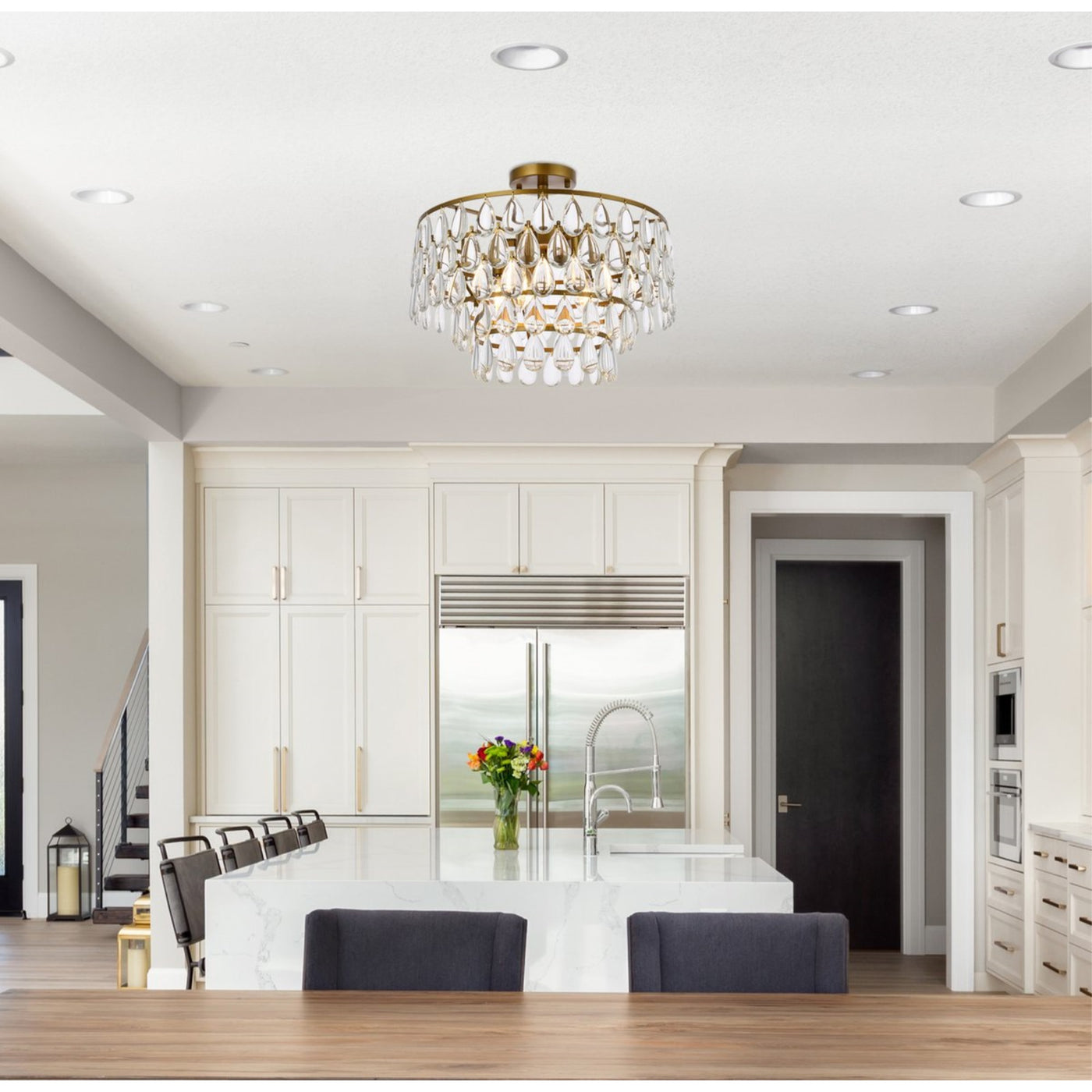 Q: Can the Elegant Lighting Mila flush mount be installed in any room?A: Yes, the Elegant Lighting Mila flush mount is designed for indoor use and can be installed in various rooms to enhance the decor with its elegant brass finish and crystal accents.
