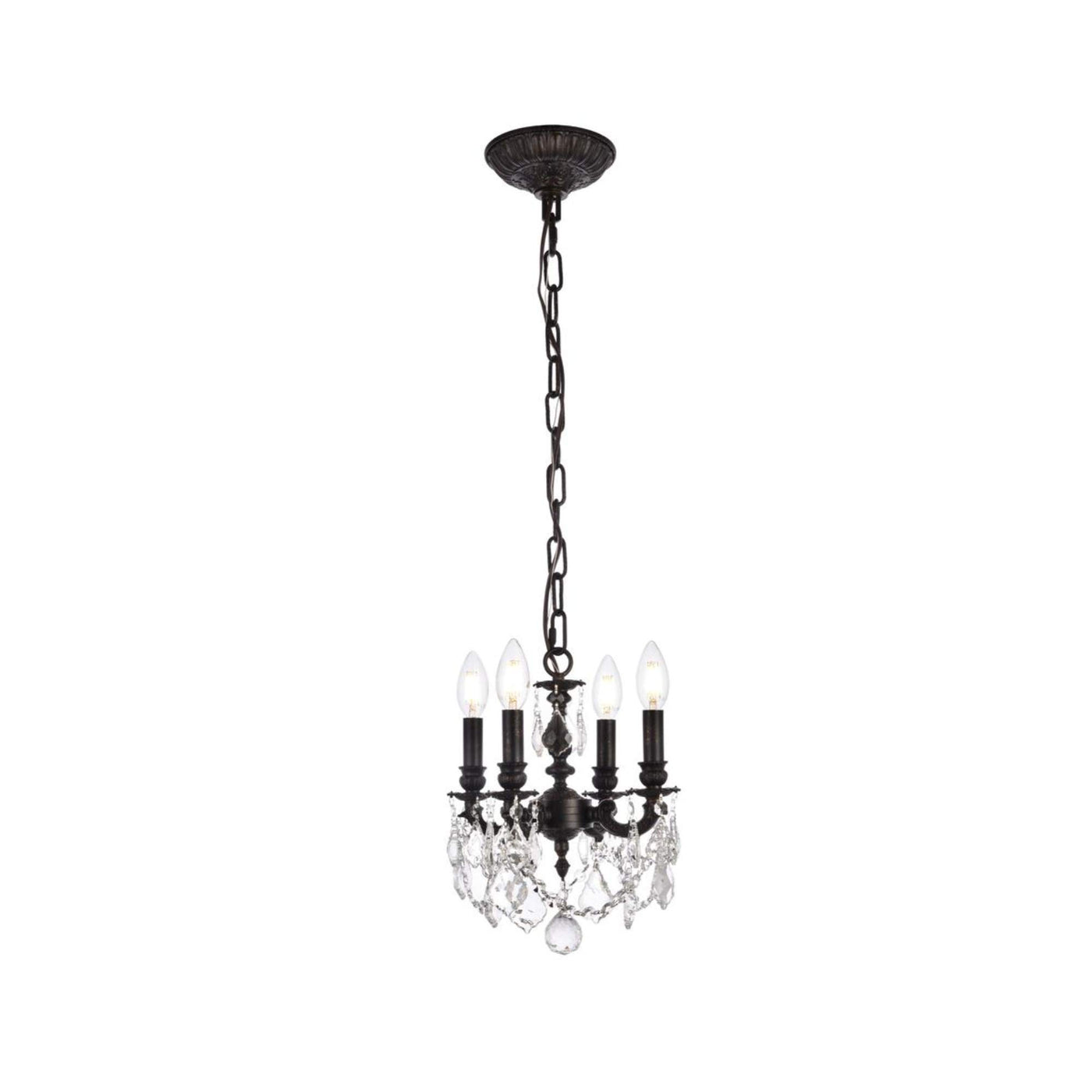 Elegant Lighting Lille Collection 4-Light Hanging Fixture with Royal Cut Crystal, Dark Bronze Finish