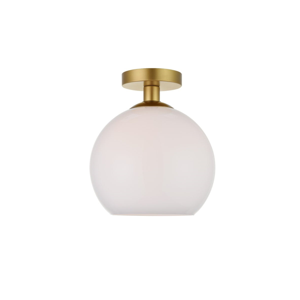 Elegant Lighting Living District Baxter 1-Light Metal Flush Mount In Brass And White