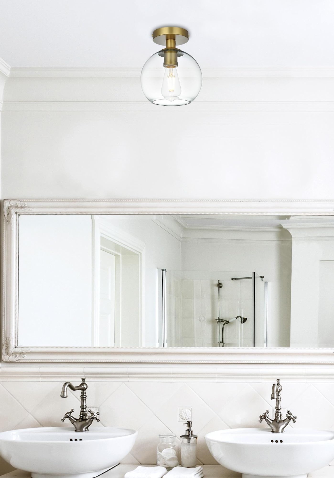 Elegant Lighting Living District Indoor Modern Home Decor Bright Baxter 1 Light Brass Flush Mount With Clear Glass