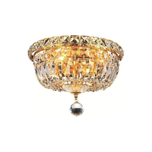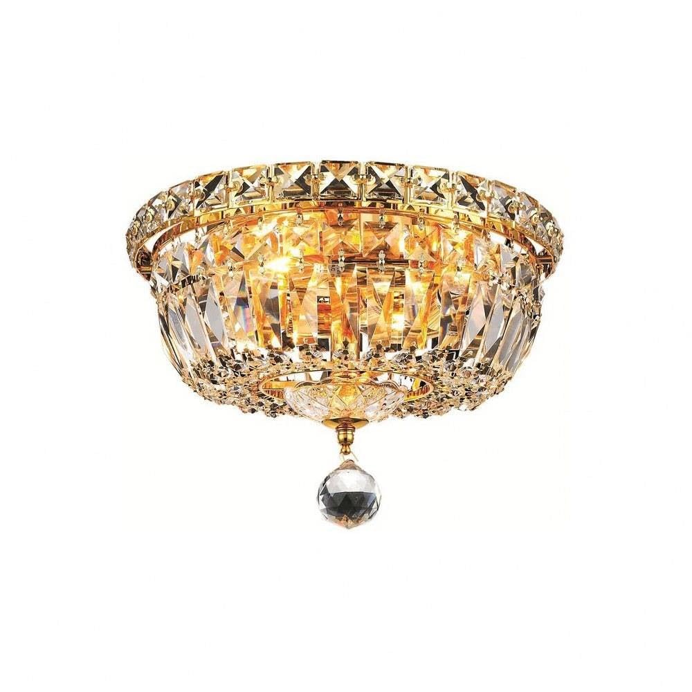 Elegant Lighting Royal Cut 4-Light Crystal Chandelier, Gold Finish, Flush Mount 10"