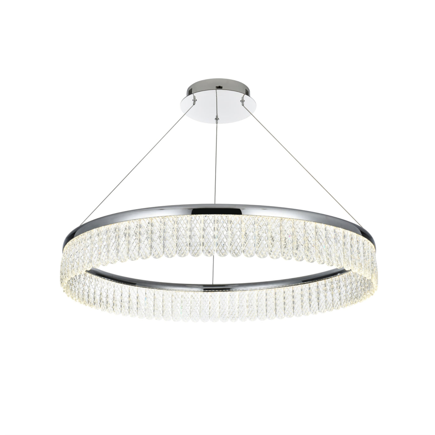 Illuminate your space with the Elegant Lighting 32-inch Chandelier, a stunning centerpiece designed to enhance any room with sophisticated charm and modern elegance. This chandelier is meticulously crafted from durable iron and aluminum, ensuring both longevity and style. The enchanting design features a single ring adorned with royal cut crystals, which beautifully diffuse light and create a captivating interplay of radiance and elegance.