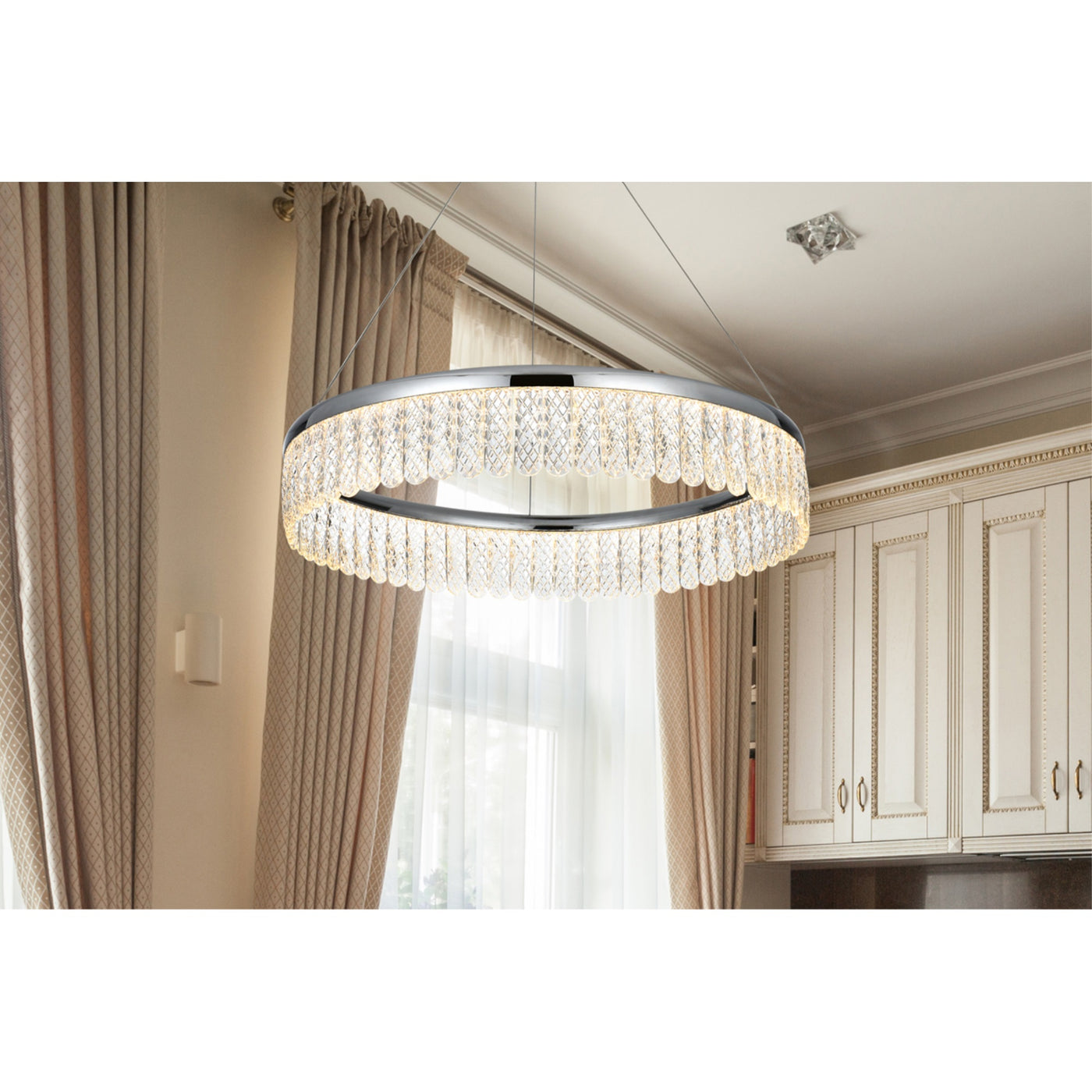 - **Elegant Design**: The single-ring design, adorned with crystals and finished in chrome and clear accents, creates a captivating interplay of radiance and elegance, making it a statement piece that enhances any interior decor.