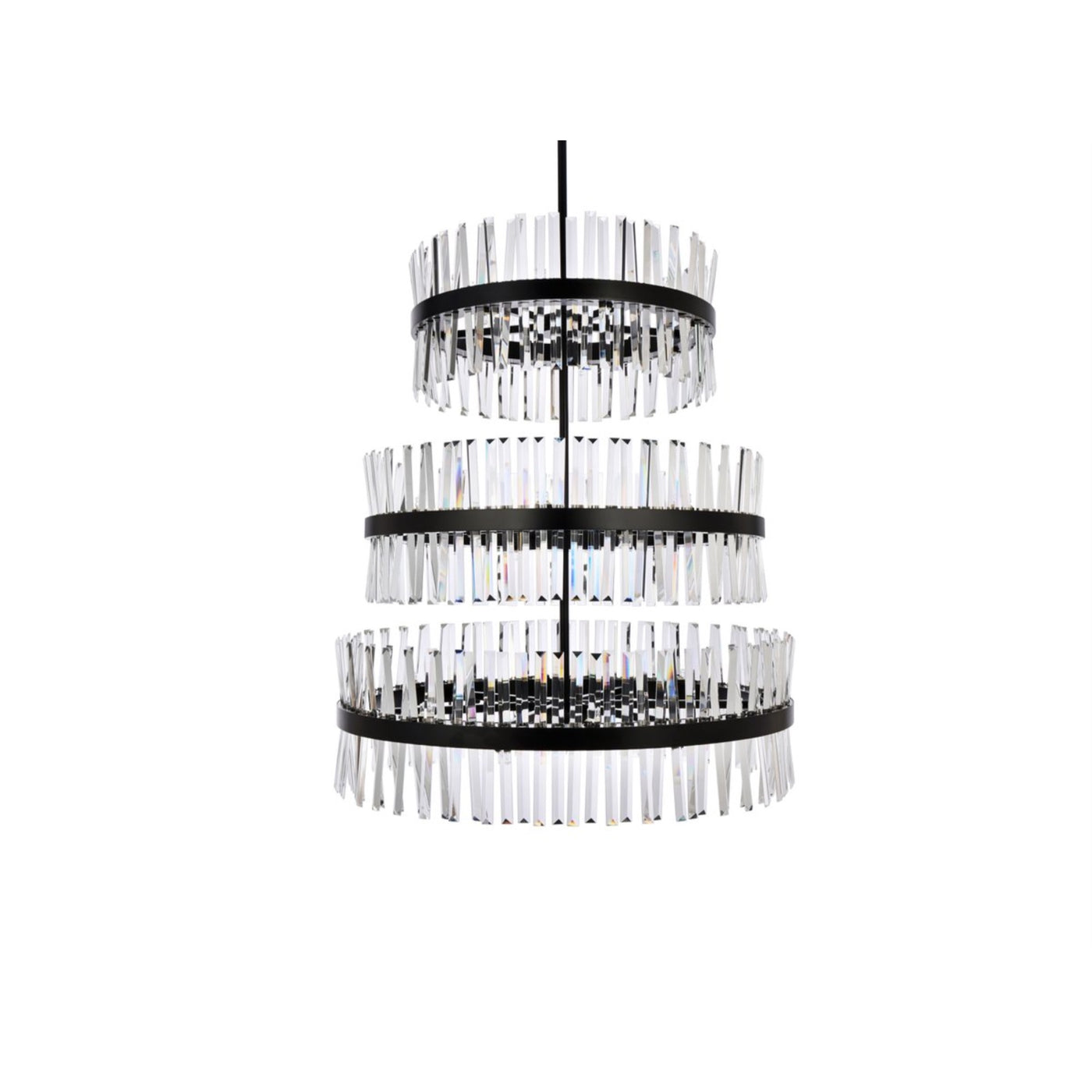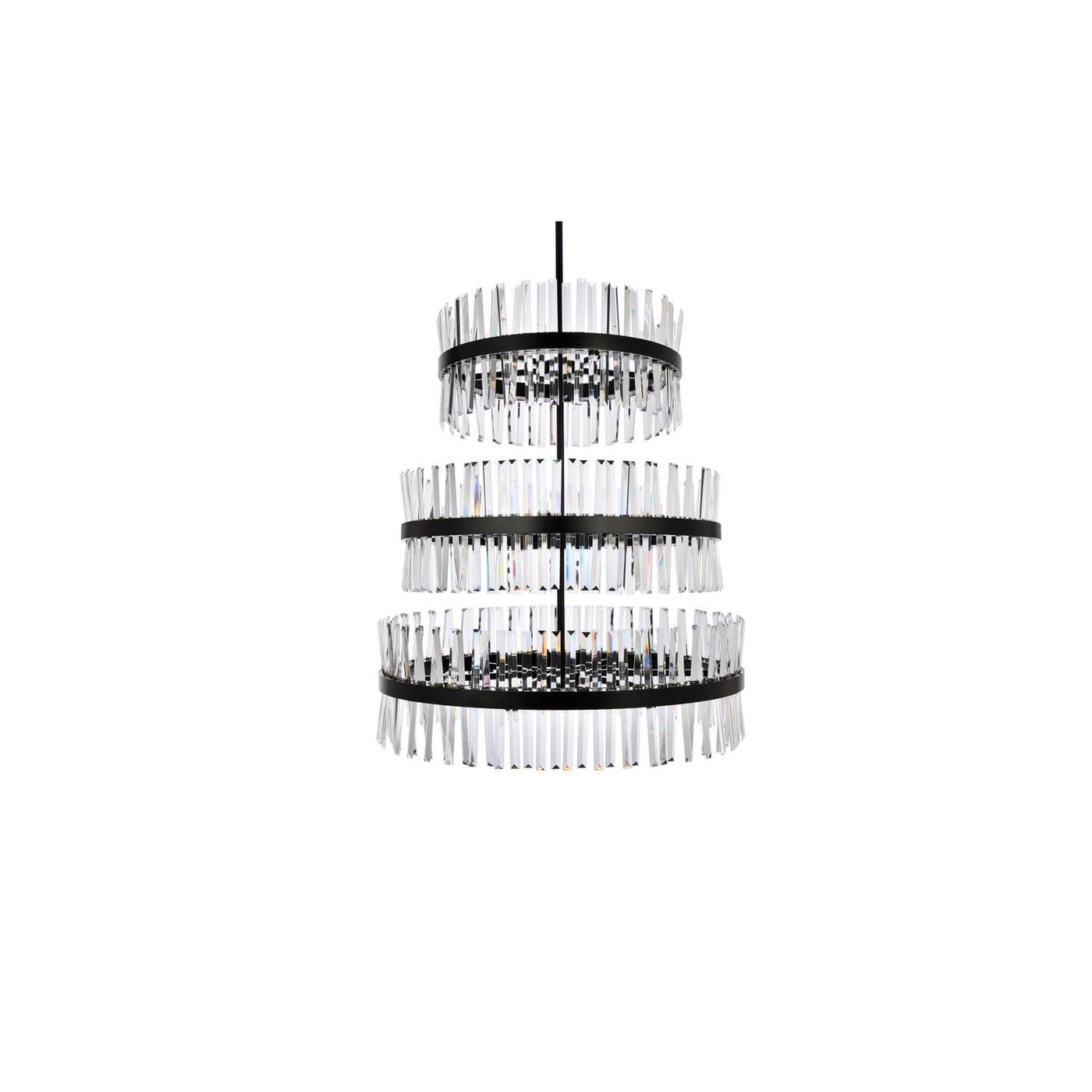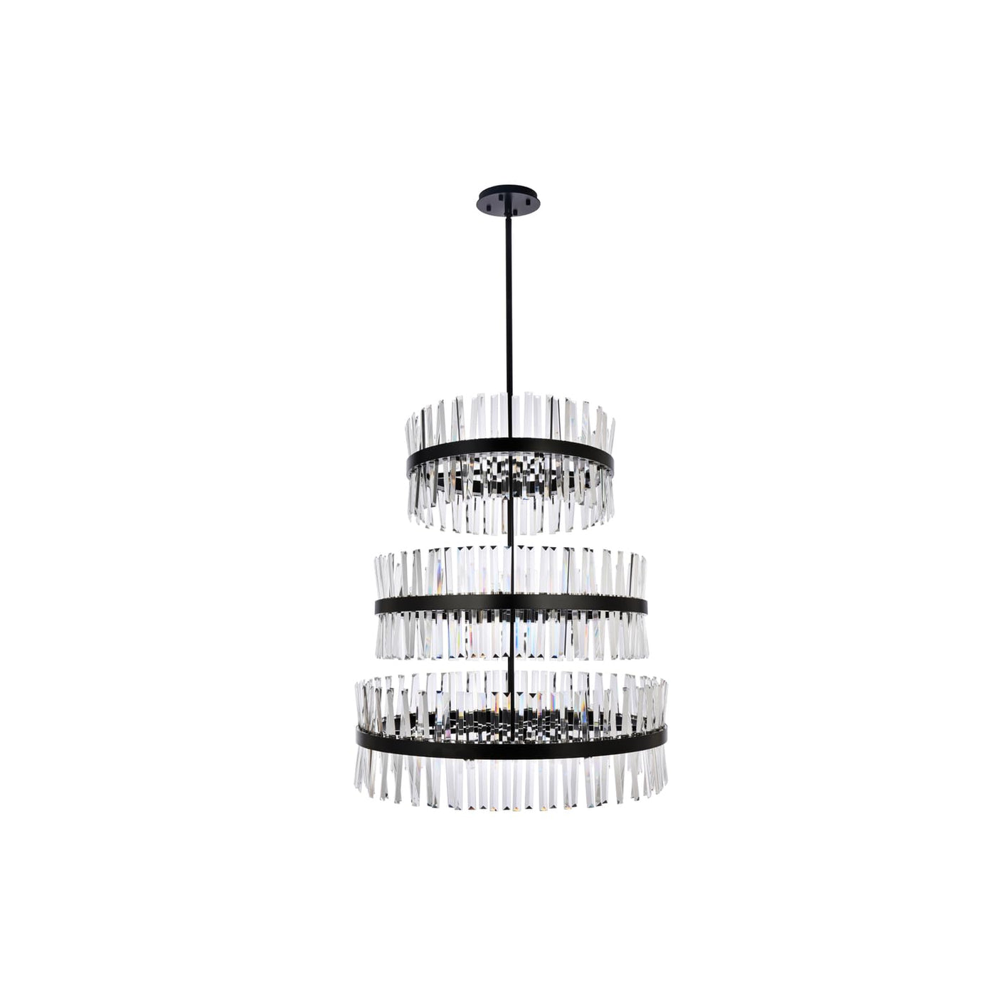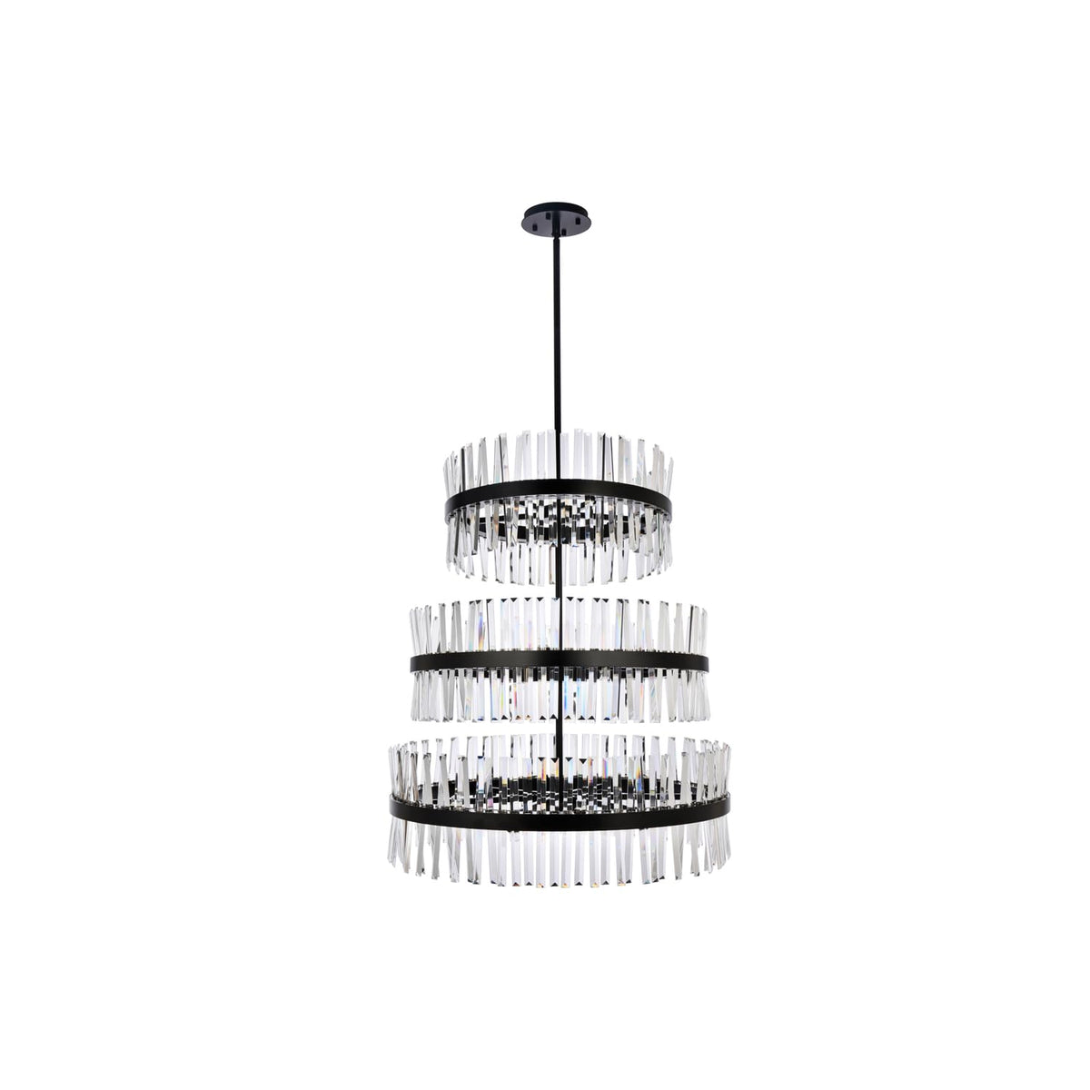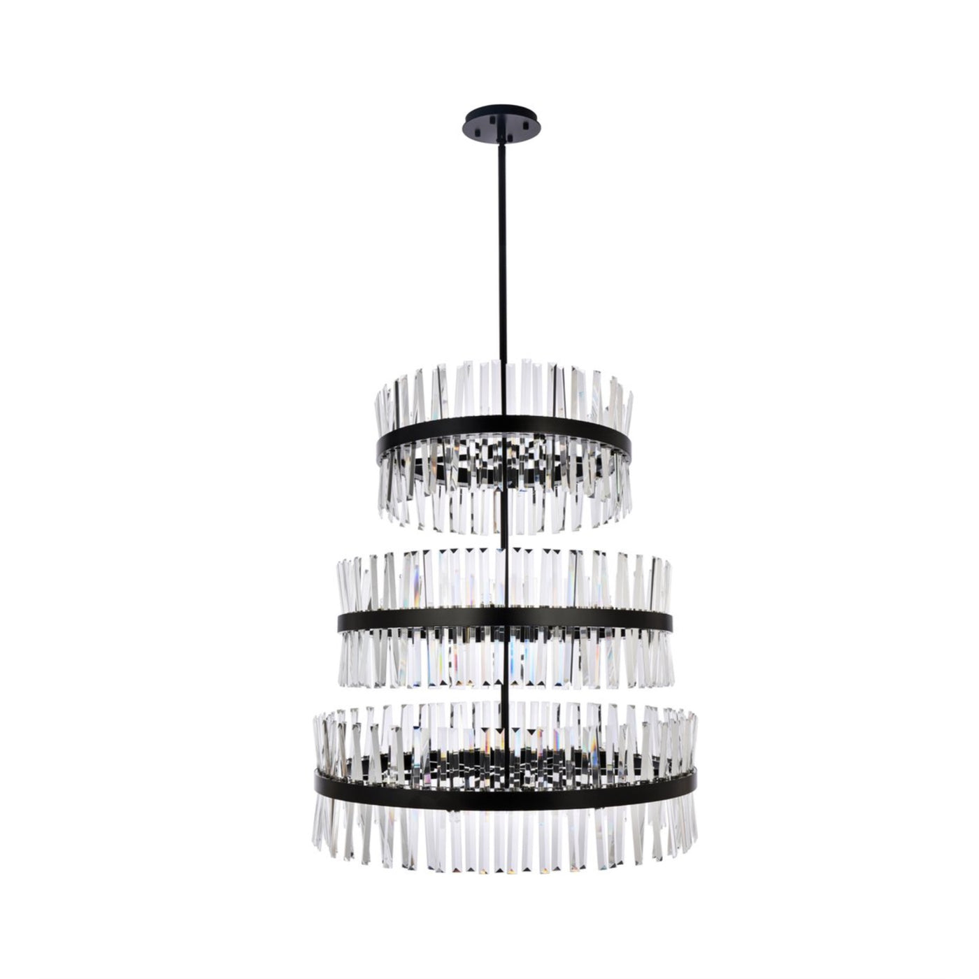 Elegant Lighting Serephina 36" Black Crystal Round Chandelier, 3 Tiers, Iron