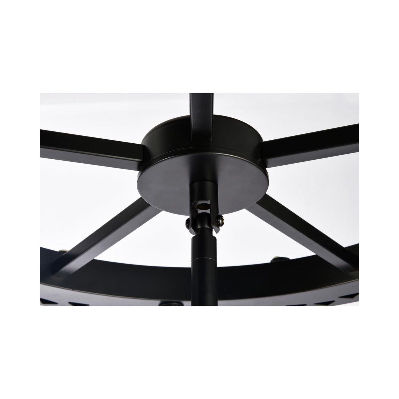 With dimensions of 36 x 36 x 110.5 inches, this chandelier not only serves as a functional lighting solution but also as a statement piece that enhances your home's aesthetic. The sleek black finish complements any decor style, making it an ideal choice for dining areas, living rooms, or entryways. The included rods (one six-inch, two twelve-inch, one sixteen-inch, and one 24-inch) provide flexibility in installation, allowing you to achieve the perfect height and arrangement.