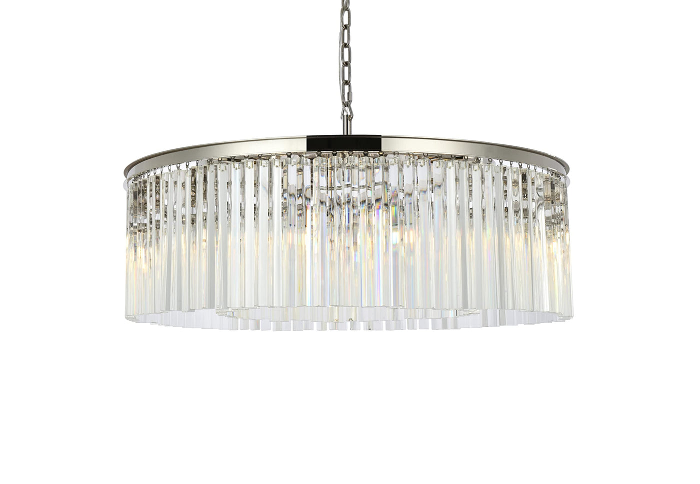 Elegant Lighting Sydney Collection 1208G43Pn/Rc 10-Light Pendant Lamp With Royal Cut Crystals, Polished Nickel Finish