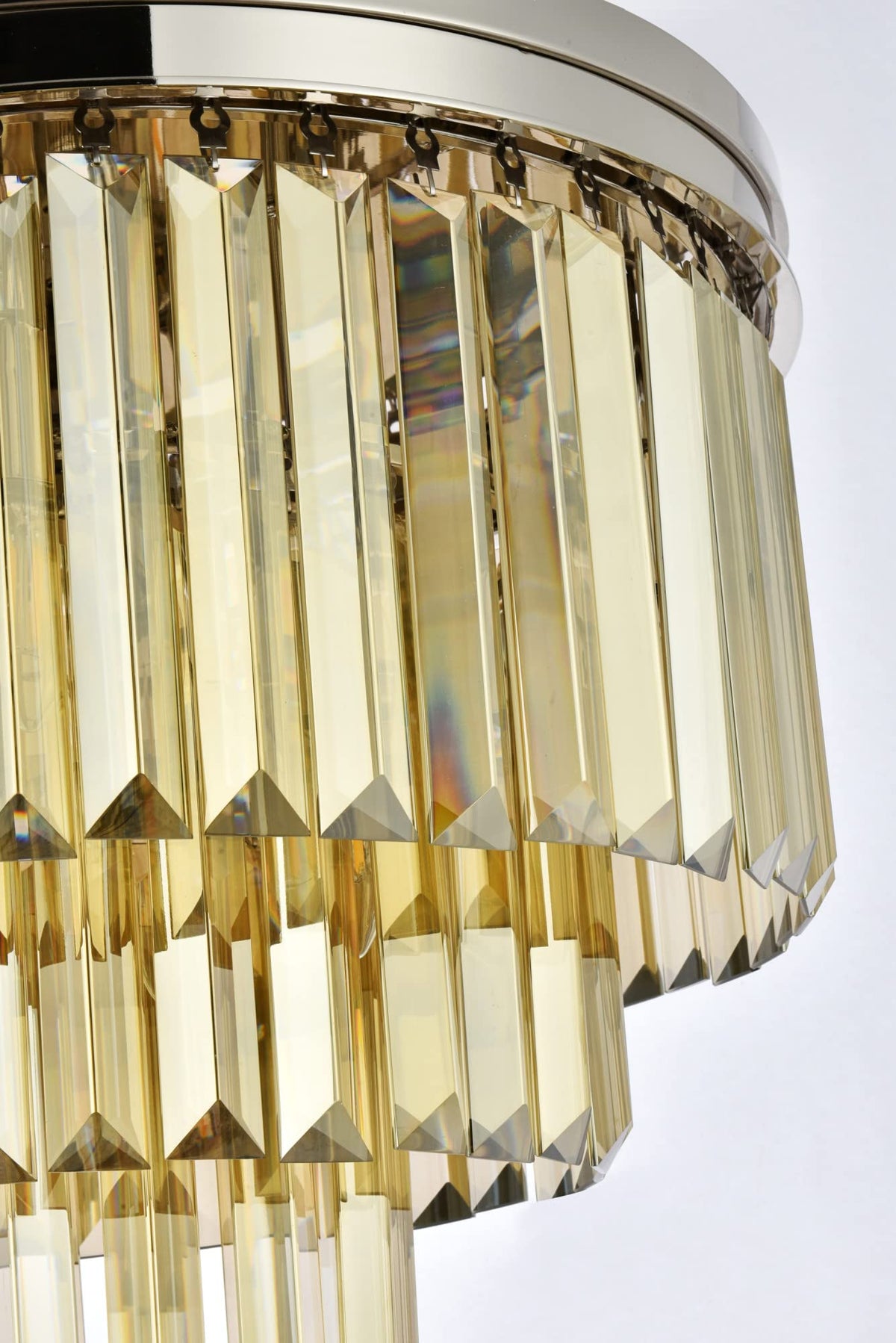 Timeless splendor and modern refinement are brought together in flush-mount Sydney fixtures. Dazzling in dining rooms, staircases, or hallways, the Sydney collection flaunts stunning tiers of royal-cut crystals in clear, golden teak, or Silver shade. A circular Matte Black or polished-nickel finished steel frame adds understated charm to this stunning flush mount lamp.