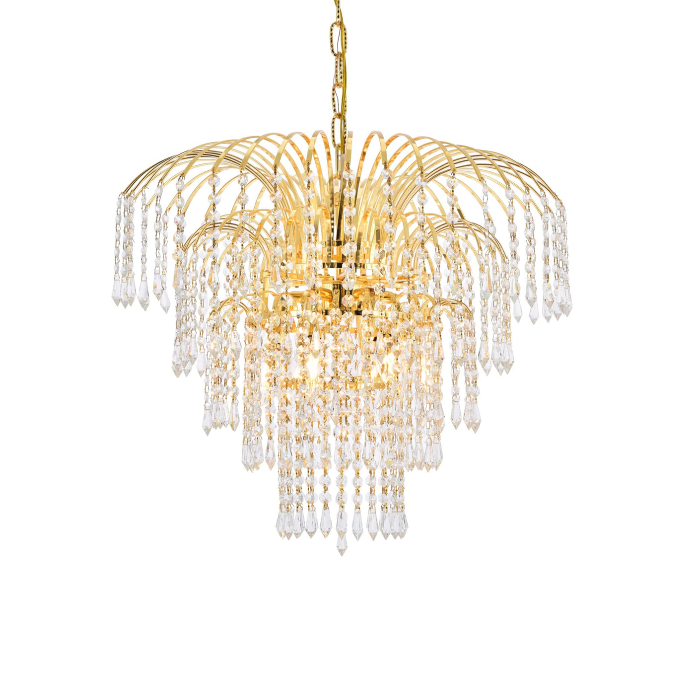 Elegant Lighting V6801D21g-Rc 18 x 21 in Falls 6 light gold chandelier - Royal cut crystals