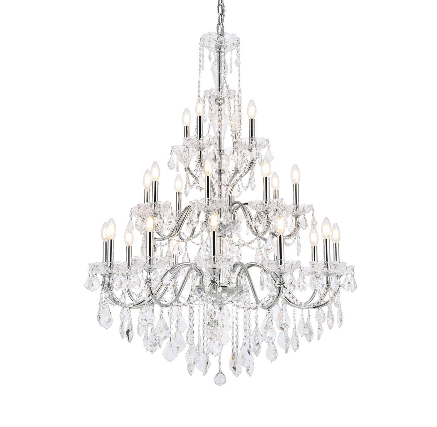 Elegant Lighting Value St. Francis 24-Light Chrome Chandelier With Royal Cut Crystals, 36In D, 49In H
