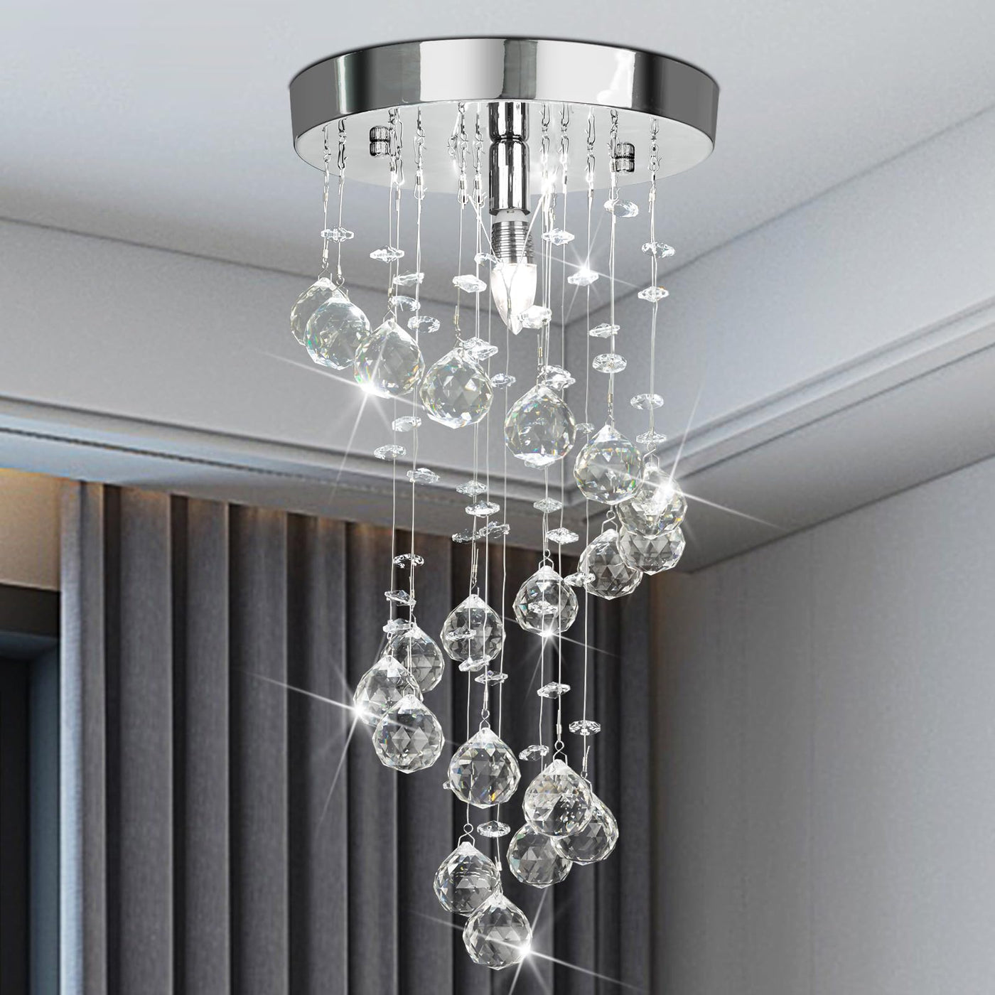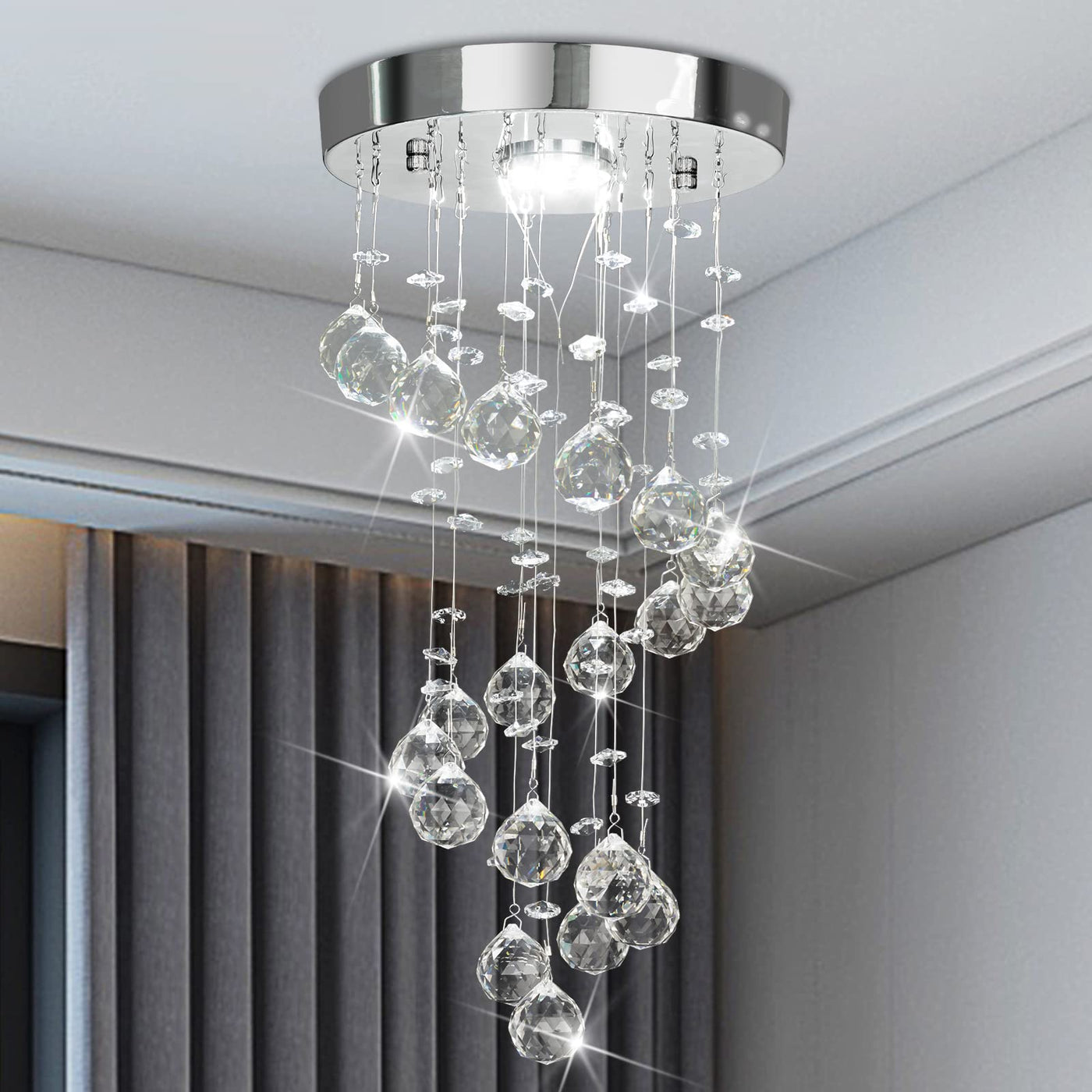 Elegant Spiral Flush Mount Chandelier, Modern Raindrop Chandelier Crystal Ball Chandeliers Fixture Pendant Ceiling Lamp Lighting Fixtures For Bedroom, Hallway, Livingroom, 8''X15.8'' Of Crystop