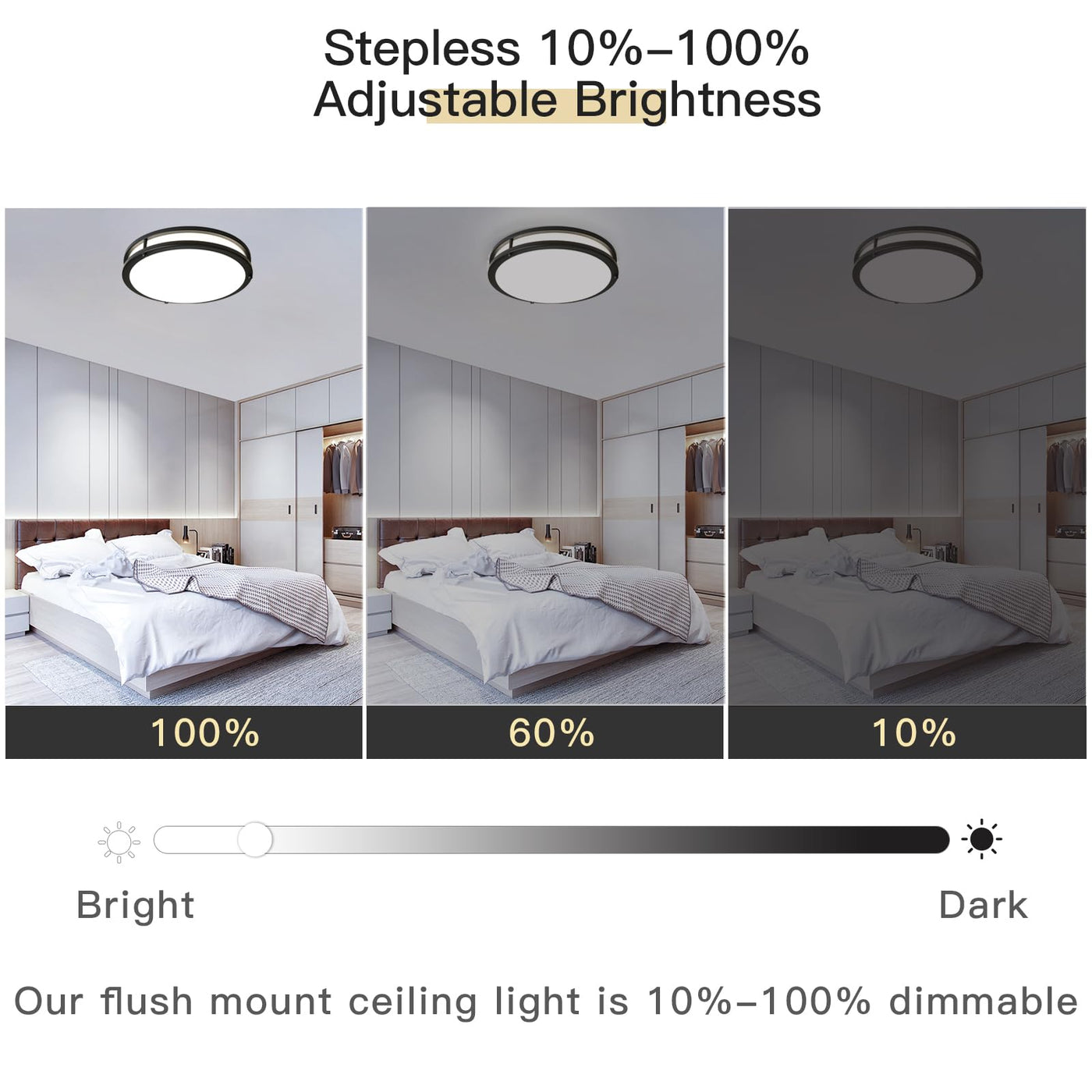 The Dimming Range Of The 2-Pack Flush Mount Led Ceiling Lights Is Set To 10%-100%, Adjustable Brightness Is Suitable For A Variety Of Scenes, Suitable For Kitchen, Living Room, Bathroom, Office, Laundry Room, Hallway, Porch Front Door. 48W High Performance Energy Saving Black Ceiling Lights Are Made Of High Quality Upgraded Leds, Which Work Efficiently And Can Emit 4800 Lumens Of Super Bright Light.