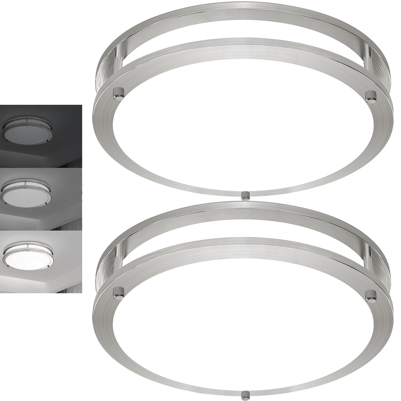 Elekeed 2 Pack 36W Ceiling Light Fixture Brushed Nickel, 13In Led Ceiling Light, Flush Mount Light Fixture No Flicker, 5000K Cei