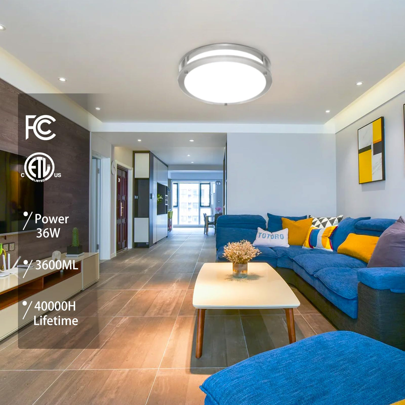 Q: What are the dimensions and specifications of the Elekeed 36W Ceiling Light Fixture?A: The Elekeed 36W Ceiling Light Fixture measures 13x13x2.7 inches and comes in a pack of two. Each light fixture provides 5000K Daylight White lighting with an impressive brightness of 3600 lumens.