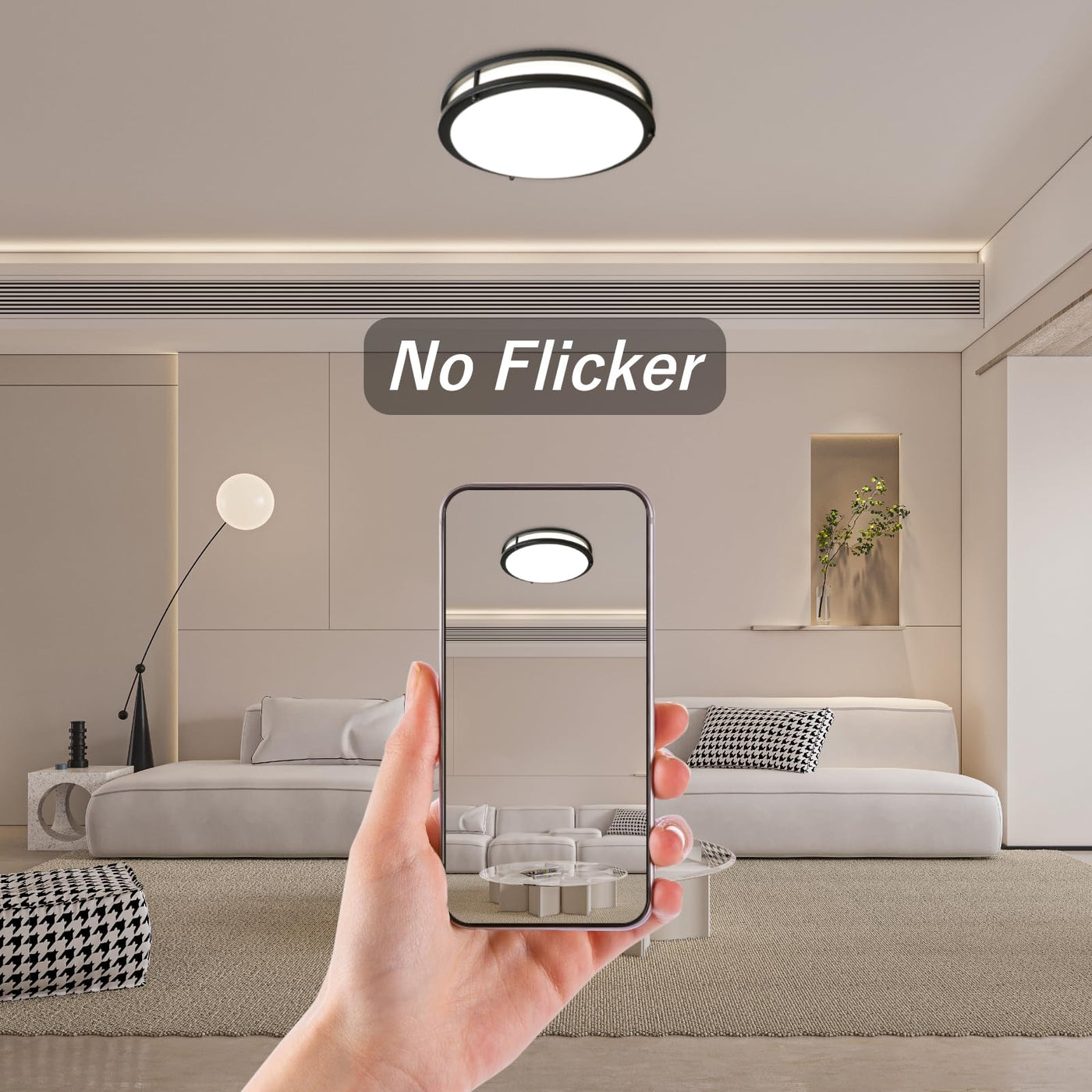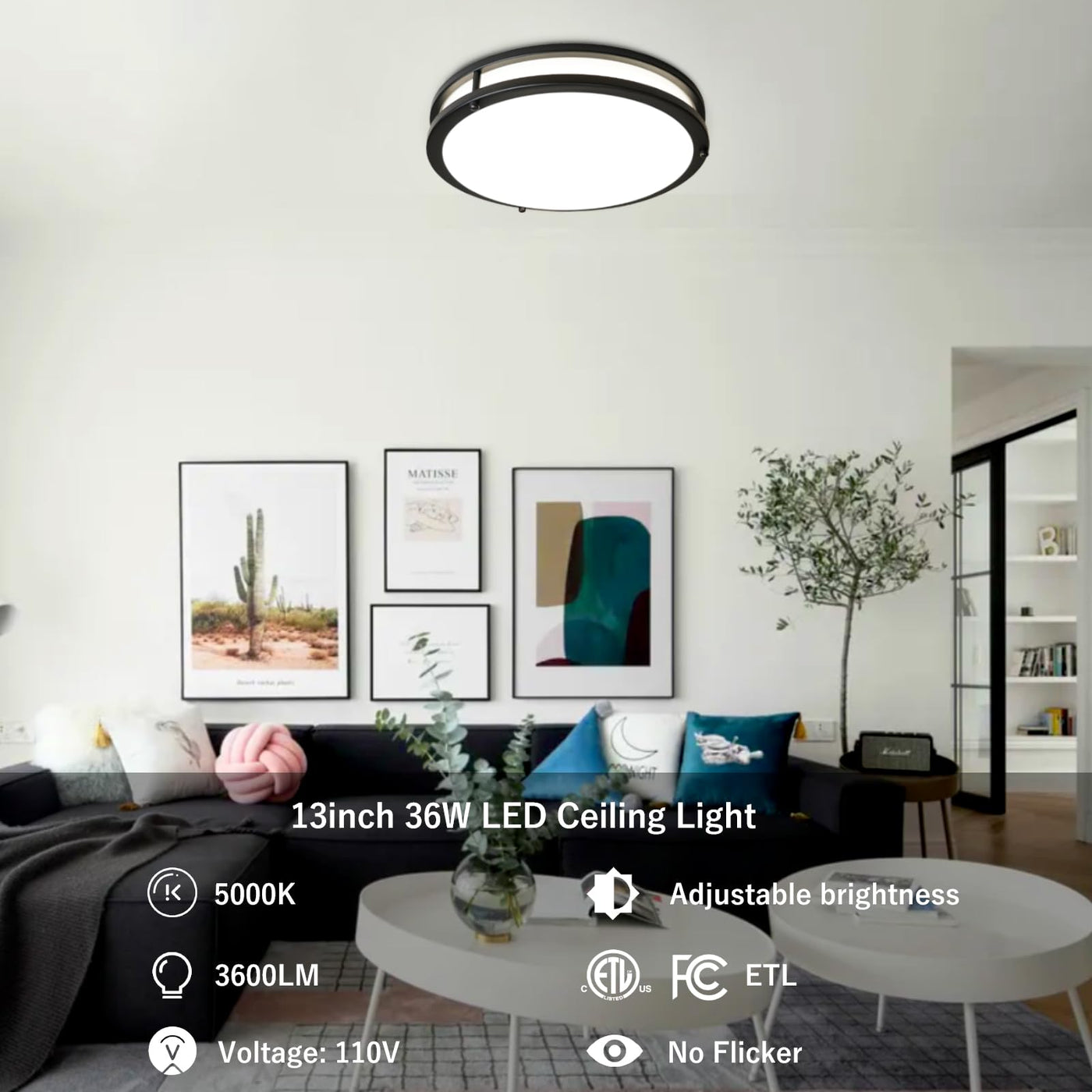 Elekeed 2-Pack Ceiling Light Fixture Black 36W, 13 Inch Flush Mount Light Fixtures 3600Lm, Modern Ceiling Light No Flicker, 5000