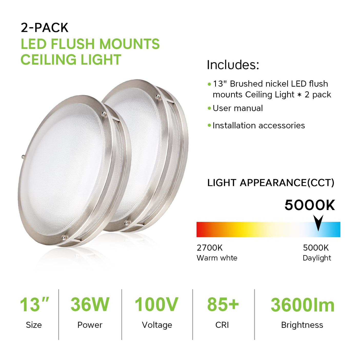 Elekeed 2Pack 36W Led Ceiling Light Fixture, 13Inch Flush Mount Ceiling Light With Double Shade Design Super Bright 3600 Lumen,