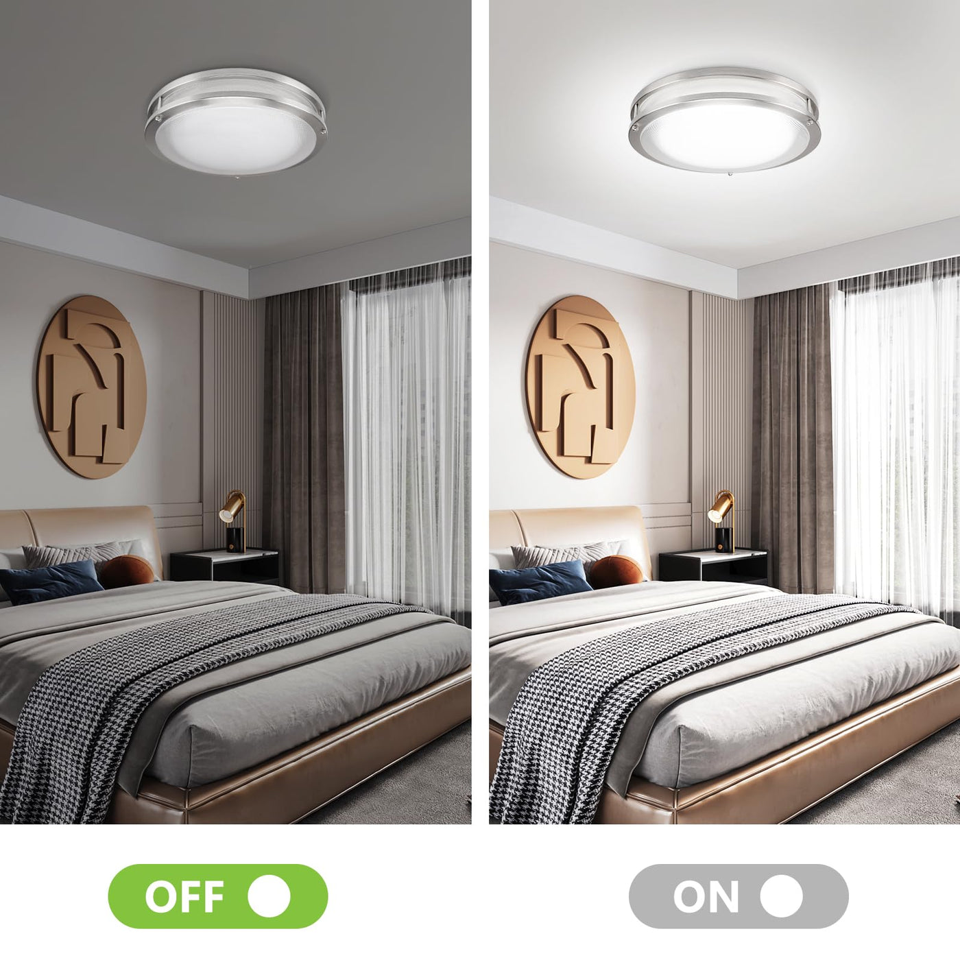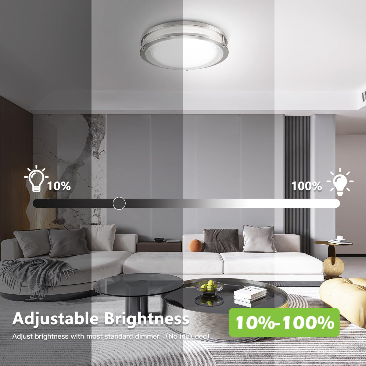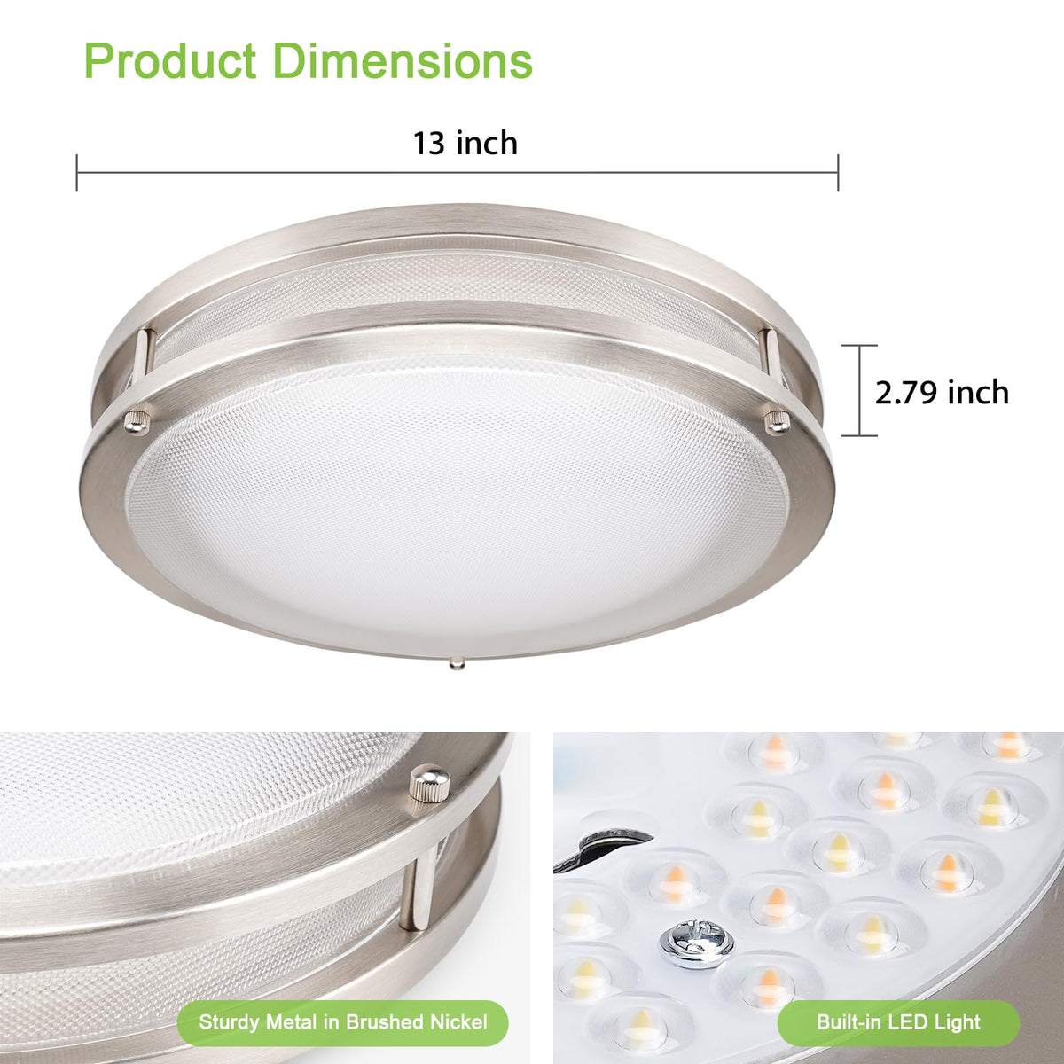 Adjustable Brightness: This 13'' Led Ceiling Light Fixture Can Be Adjusted From 10% To 100% Brightness With A Compatible Dimmer (Not Included). Works With Most Dimmers On The Market, Making It Easy To Adjust The Brightness To Suit Your Mood, Dimming The Light For A Romantic And Soft Ambience While Keeping The Light High Enough For Work. Unique Design: The Frame Of This Bathroom Ceiling Light Is Made Of Brushed Nickel Finish, Which Is Very Durable And Can Withstand Years Of Use Without Worrying About Fading. The Lampshade Is Made Of Exquisite And Unique Design, And Its Stylish Design Can Be Well Integrated Into A Variety Of Home Decor, Adding Vitality And Neat Lighting To Your Home. Protect Your Family'S Safety: The Ceiling Light Fixture Features Overload And Short Circuit Protection To Ensure Protection Against Electric Shock, Leakage And Potential Disaster. Quality Customer Service: If You Have Any Questions, Please Feel Free To Contact Us, We Will Reply You Within 24 Hours To Give You A Perfect Shopping Experience.