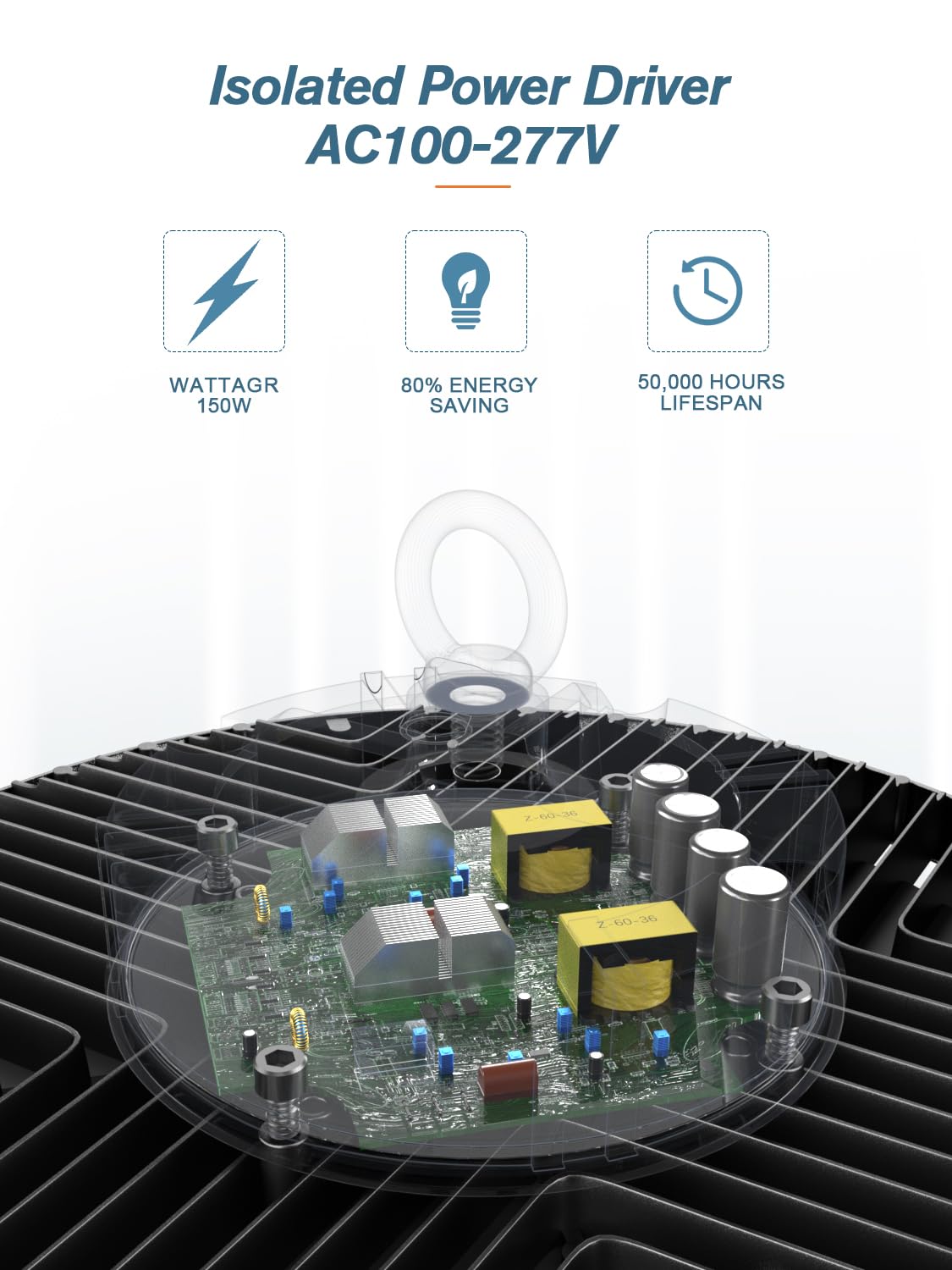 Q: Is the ELEKICO high bay light energy-efficient?A: Yes, the ELEKICO high bay light is highly energy-efficient, with a light output of up to 150 lumens per watt (LM/W). This efficiency not only provides bright lighting but also helps in reducing electricity costs, making it a cost-effective choice for large spaces.