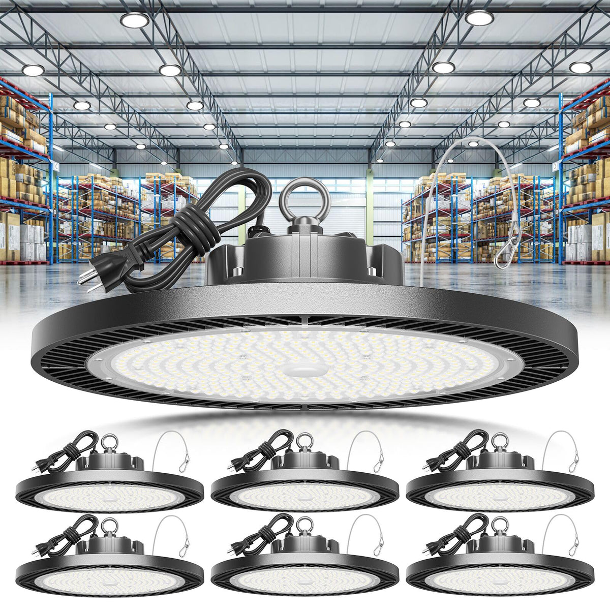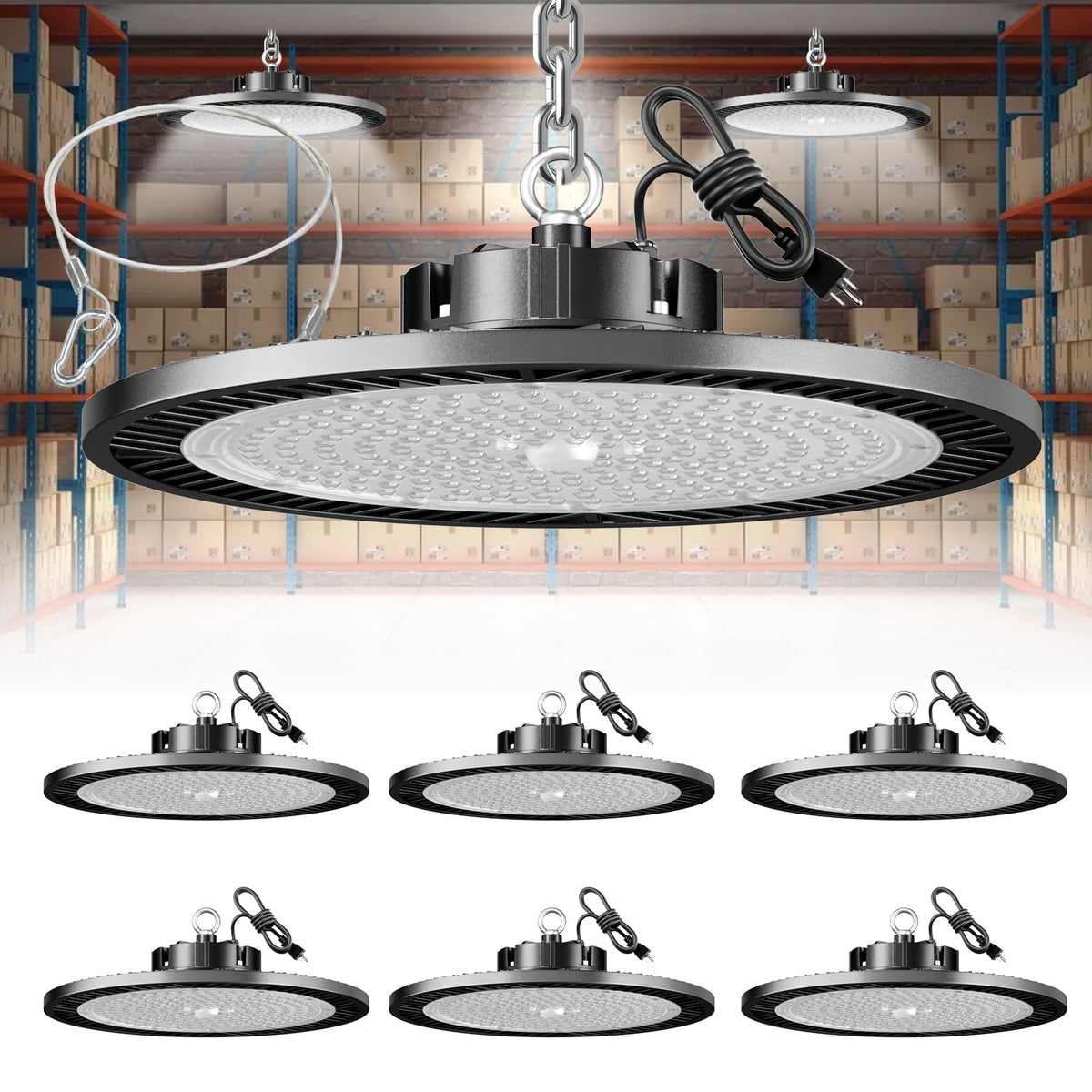 Elekico Super Bright 250W Ufo Led High Bay Light 35000Lm With Plug 5Ft Cable (Eqv.1000W Mh/Hps/Hid),5000K High Bay Led Shop Lights Garage Lighting For Garage Factory Workshop Warehouse Barn -6Pack