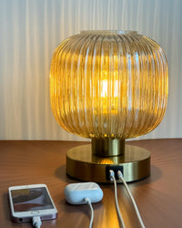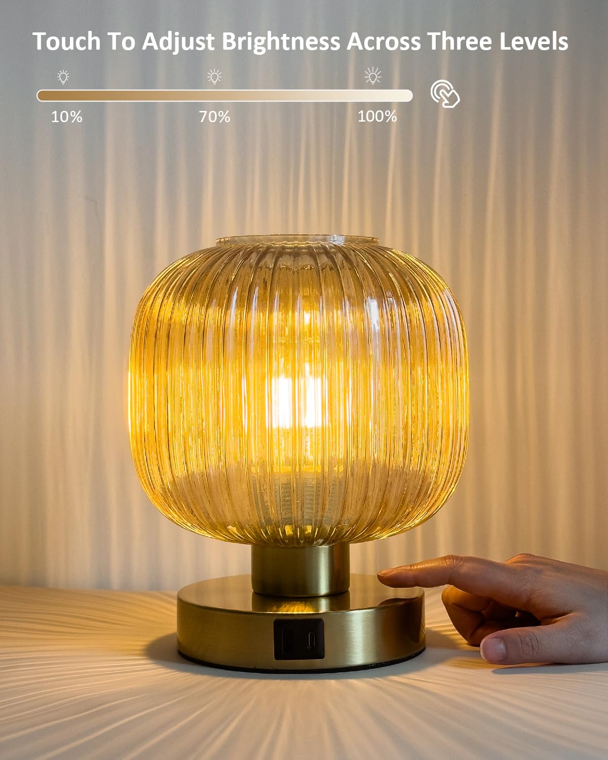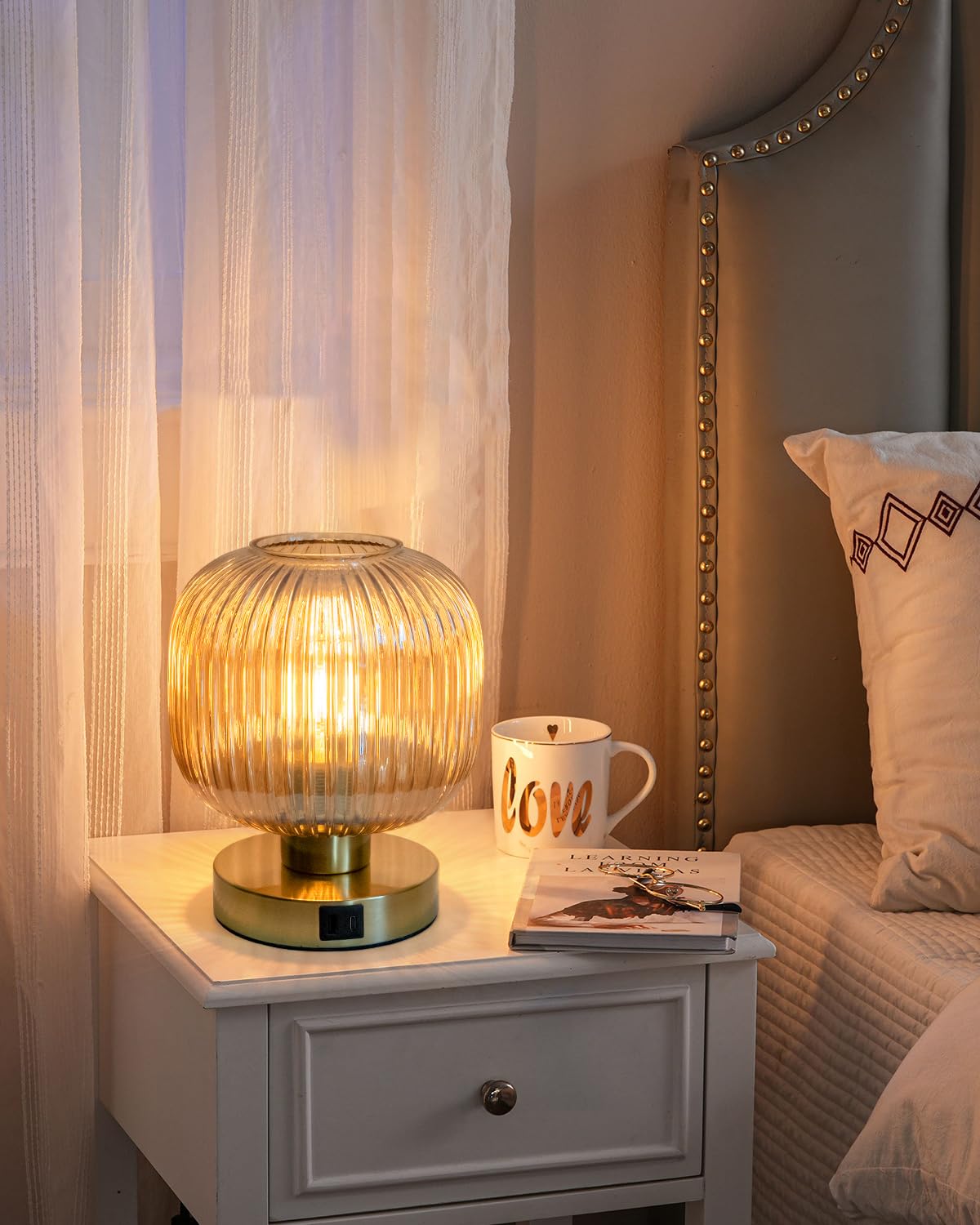 Elenhome Big Touch Table Lamp,Elegant Gold Glass Bedside Lamp 3 Way Dimmable With Usb C+A Charging Ports - Bedroom Nightstand & Living Room Essential, 4W Bulb Included (Gold)