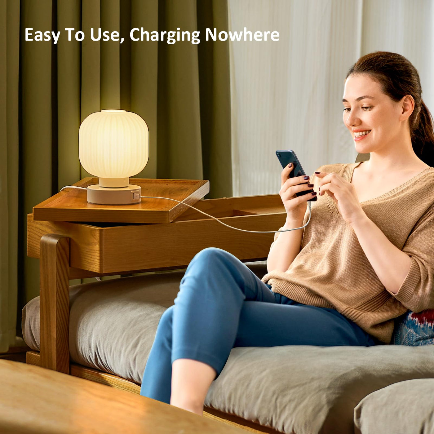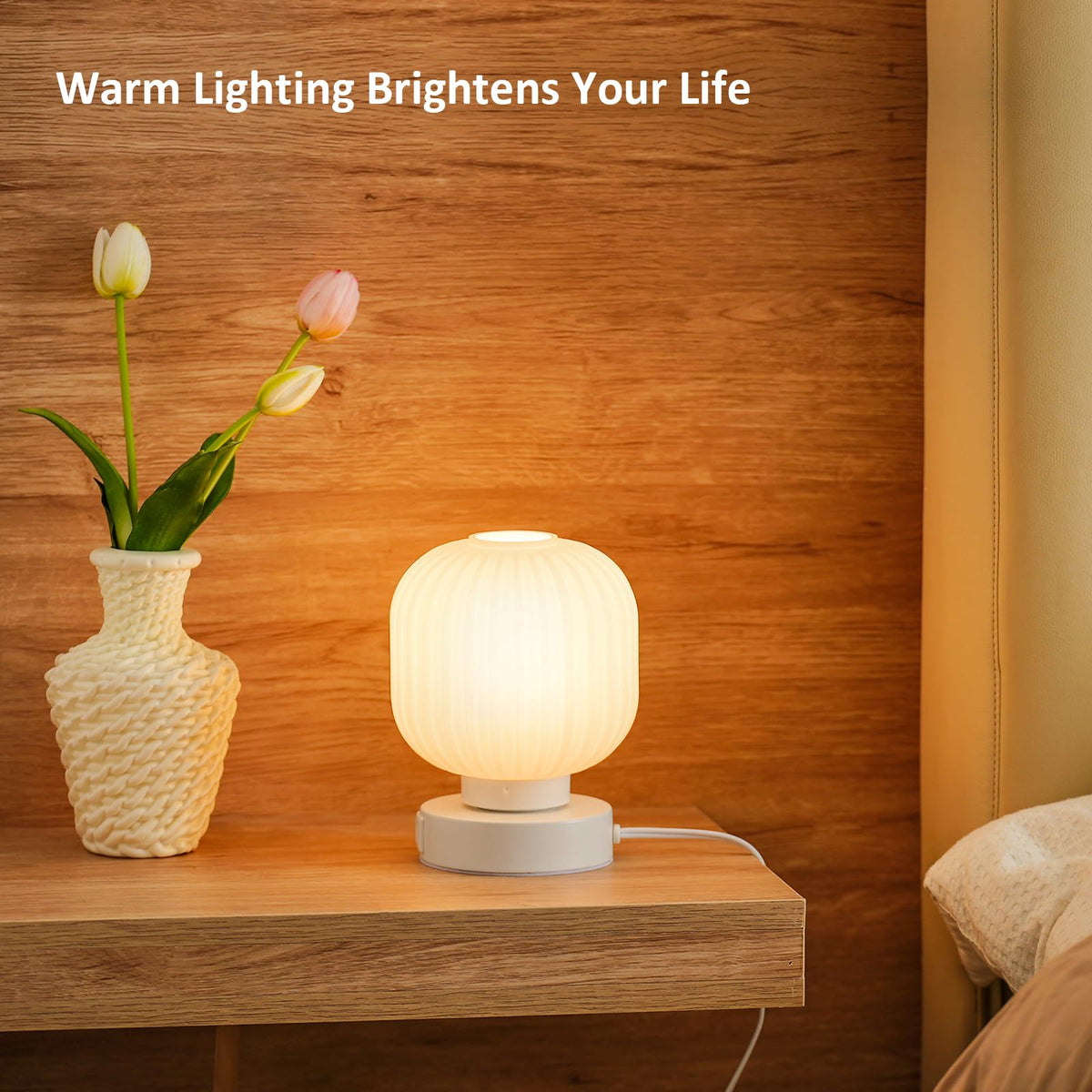 Charging Convenience:This touch table lamp Seamlessly integrated with USB-A and Type-C charging ports delivering a combined 5V/2.1A output, this exquisite touch lamp offers convenient simultaneous charging foryour phone, kindle, tablet, watch and other devices no matter is on or off. | 3-Way Dimmable Control:Dimmable table lamp With 3-Way brightness options (low, medium, high) to meet your needs and a responsive touch control sensor, effortlessly customize the illumination to suit your varying needs and moods throughout the day. | Cozy Lighting:Bedside table Lamp equipped with a 6W E26 LED bulb that emits a soft and warm 3000K light, creating a cozy atmosphere in your bedroom. The lantern-shaped shade ensures even distribution of light for an elegant touch, while the flicker-free LED bulb guarantees comfortable use for over 20,000 hours. | Refined Dual Lamp:Crafted with understated elegance in mind, our Dual Lamp boasts a minimalist design aesthetic, featuring a white glass lampshade and sleek metal base that seamlessly complements any decor style. Perfectly suited for bedside, dresser, or shelf use, this lamp optimizes space-saving functionality without compromising on style. It's also the perfect gift for your loved ones. | Premium Quality, Reliable Service:Meticulously crafted from premium materials and supported by attentive service, complete with a 1-year warranty, this lamp guarantees enduring durability and utmost customer satisfaction.Contact us to get free replace if the glass is dmaged by transportation. New lot package will be improved.