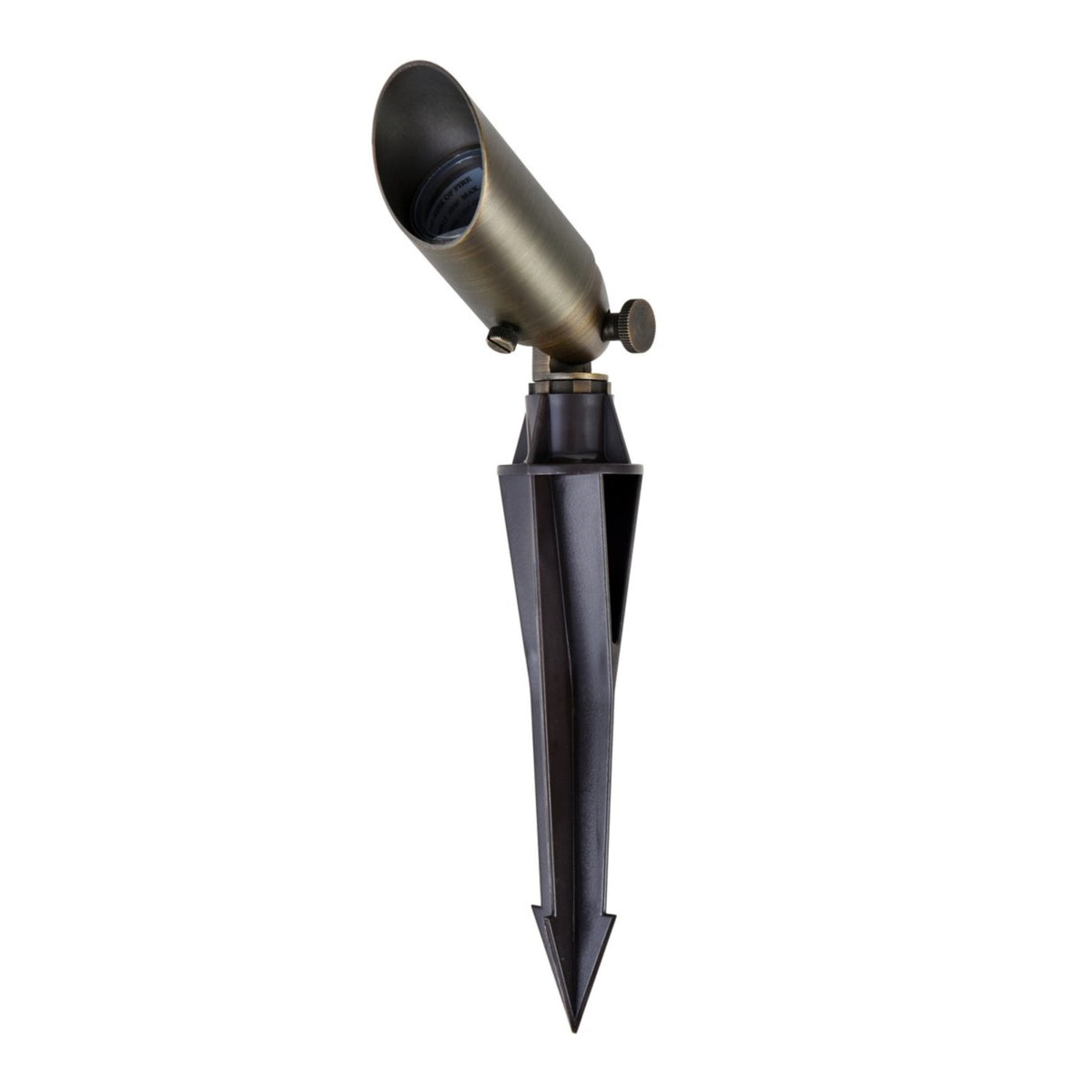 - Finish: Antique Brass - Dimmable Lights: Yes - Housing Material: Die-Casting Brass - Light Source: MR16 - Room of Use: Outdoor - Durable material construction, die cast brass - Comes with clear glass lens - Uses MR16 light bulb which is not included - Comes with one eight inch stake - Three feet spt-1W wiring - Perfect illumination for your outdoor needs - Usable in wet locations - UL and ULC Standard - Includes 8" Stake.