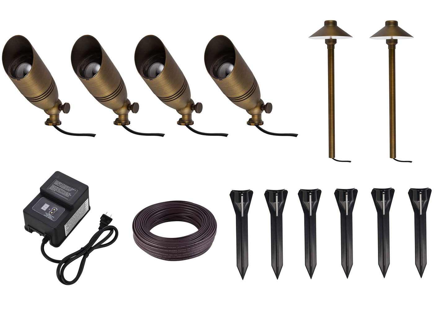 Elitco Lighting Aera Landscape Lighting Kit - Brass Finish, Set Of 6 Outdoor Lights