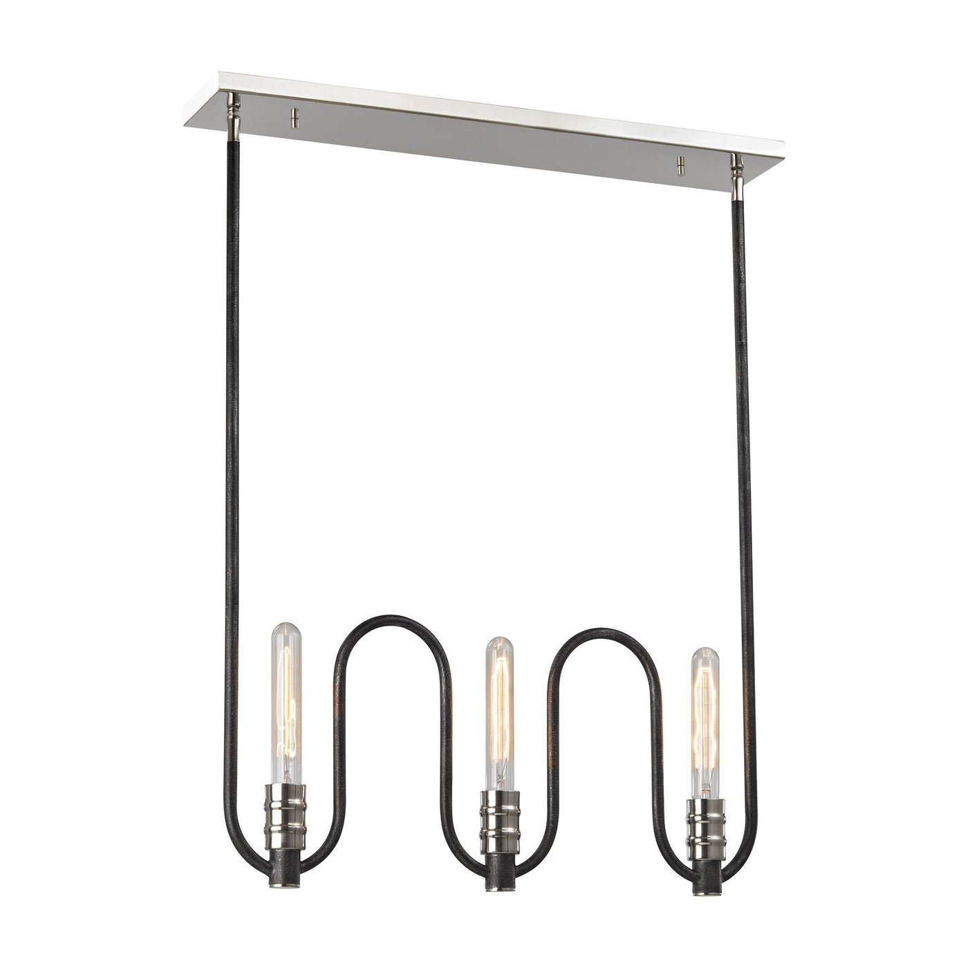 Elk Home 3-Light Linear Chandelier, 2'' Wide, Polished Nickel & Silvered Graphite