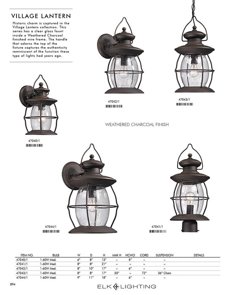 Elk Home 47044/1 Village Lantern 18'' High 1-Light Outdoor Sconce In Weathered Charcoal