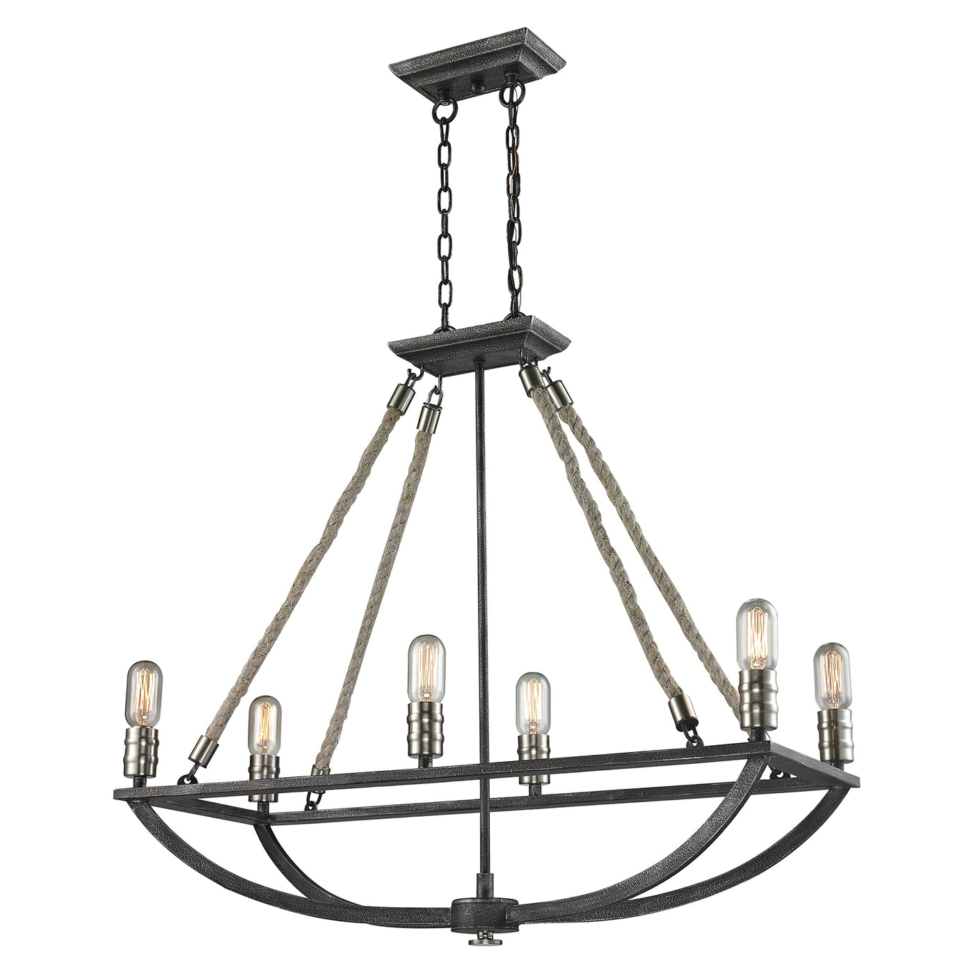 Elk Home 6-Light Chandelier, 13'' Wide Natural Rope & Polished Nickel, Silver Metal
