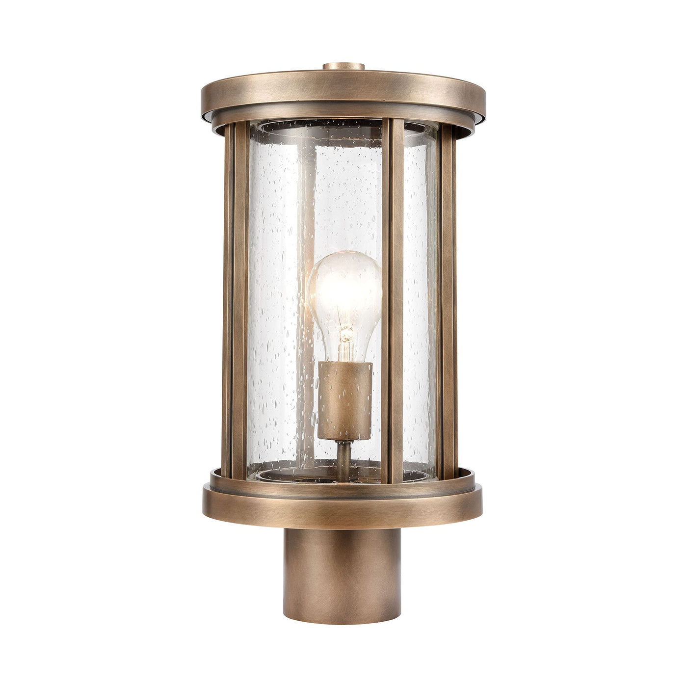 Elk Home Brison Vintage Brass Post Light With Clear Seeded Glass, 1-Light, Transitional Style