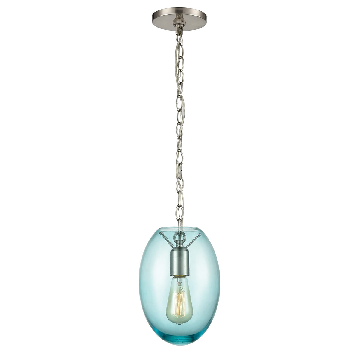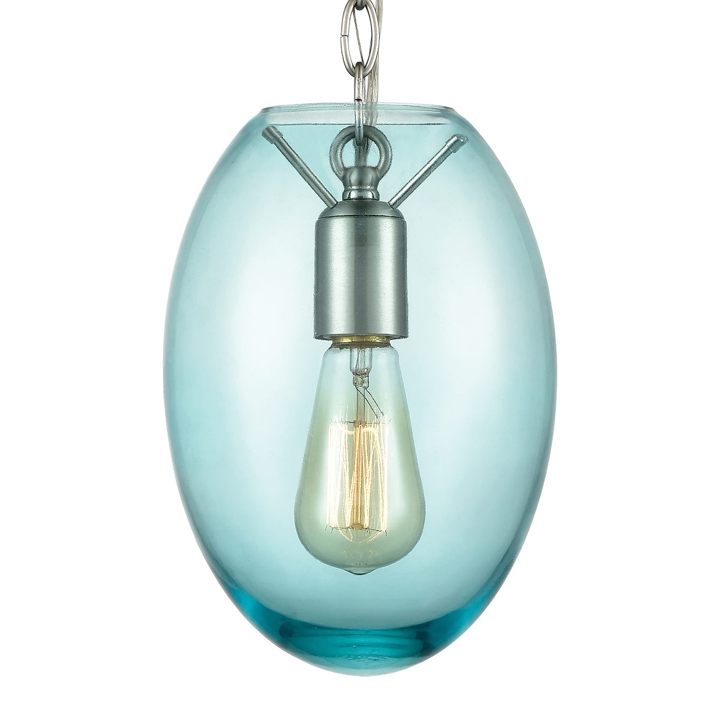Elk Home Ellipsa Mini Pendant Light - Satin Nickel, Light Blue Glass, Modern 1-Light Fixture