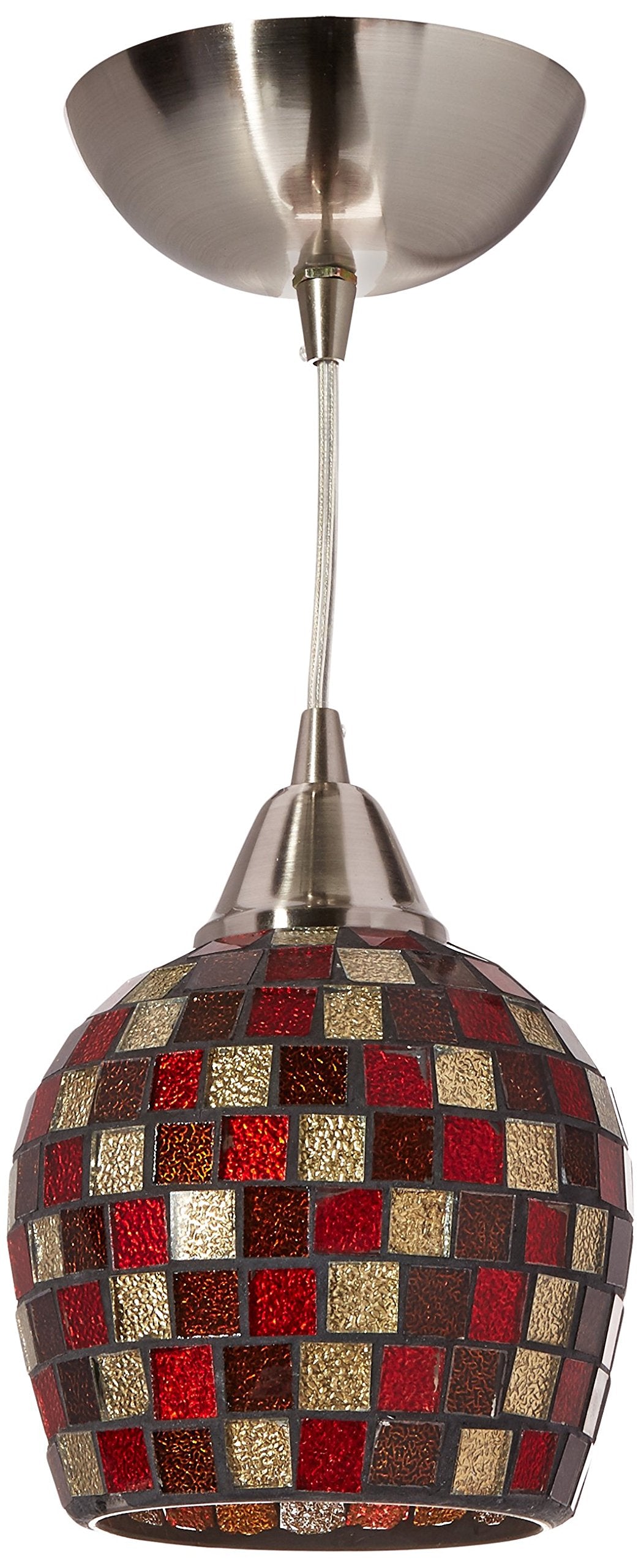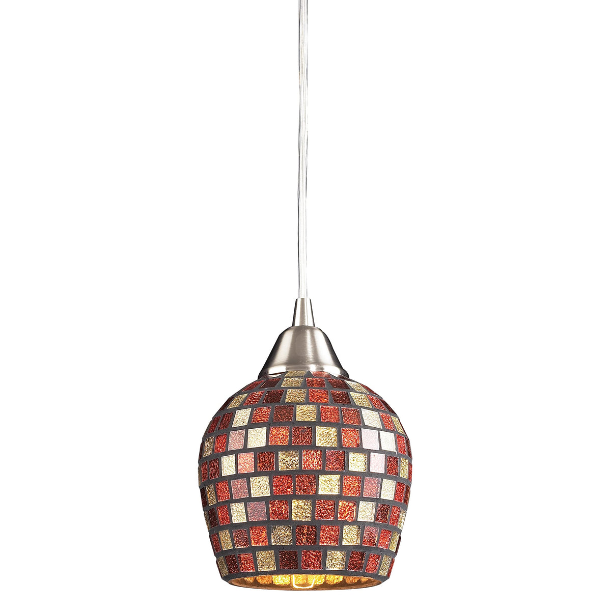 Elk Home Fusion Mini Pendant Light, 1-Light Satin Nickel With Multicolor Mosaic Glass