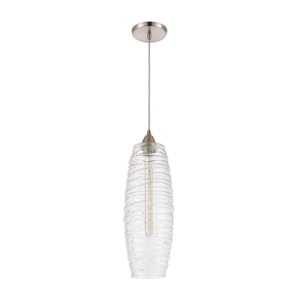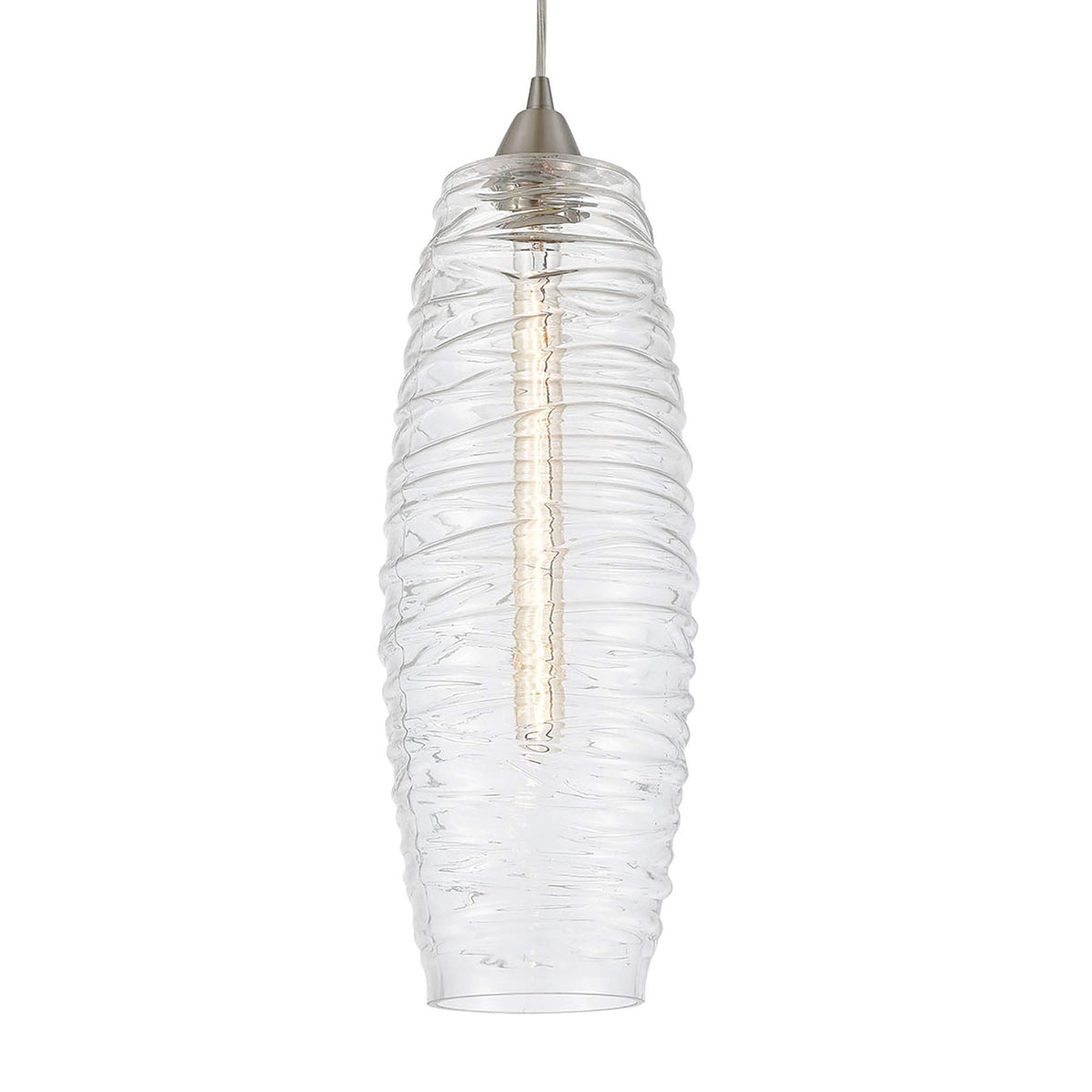 Elk Home Liz Mini Pendant Light, Satin Nickel Finish, Clear Ribbed Glass, 1-Light, Modern Style